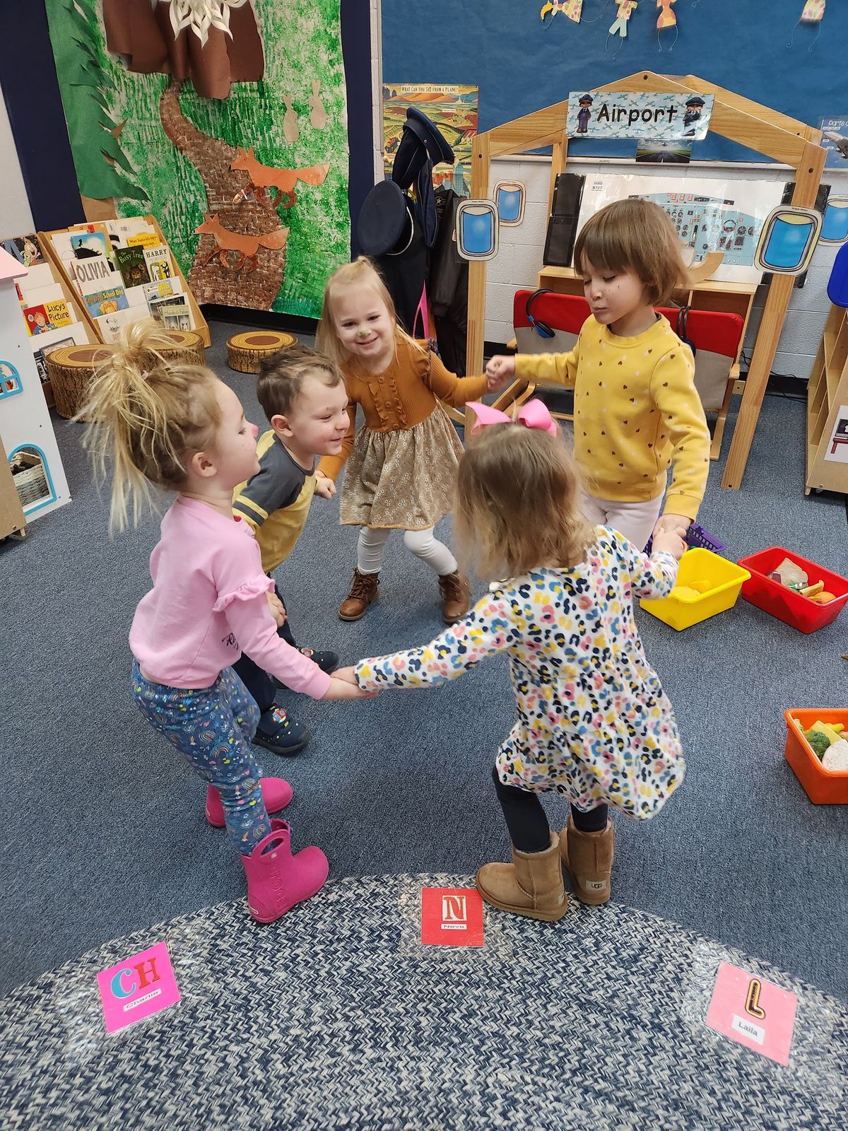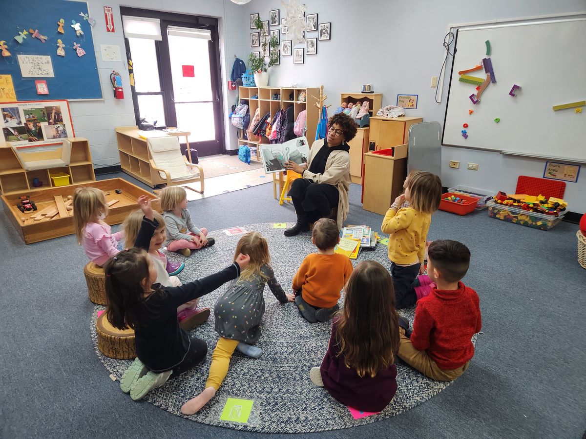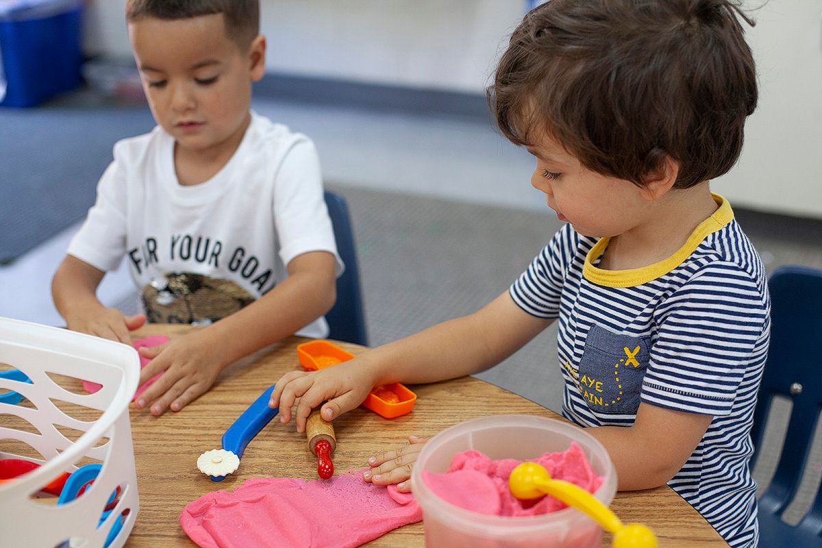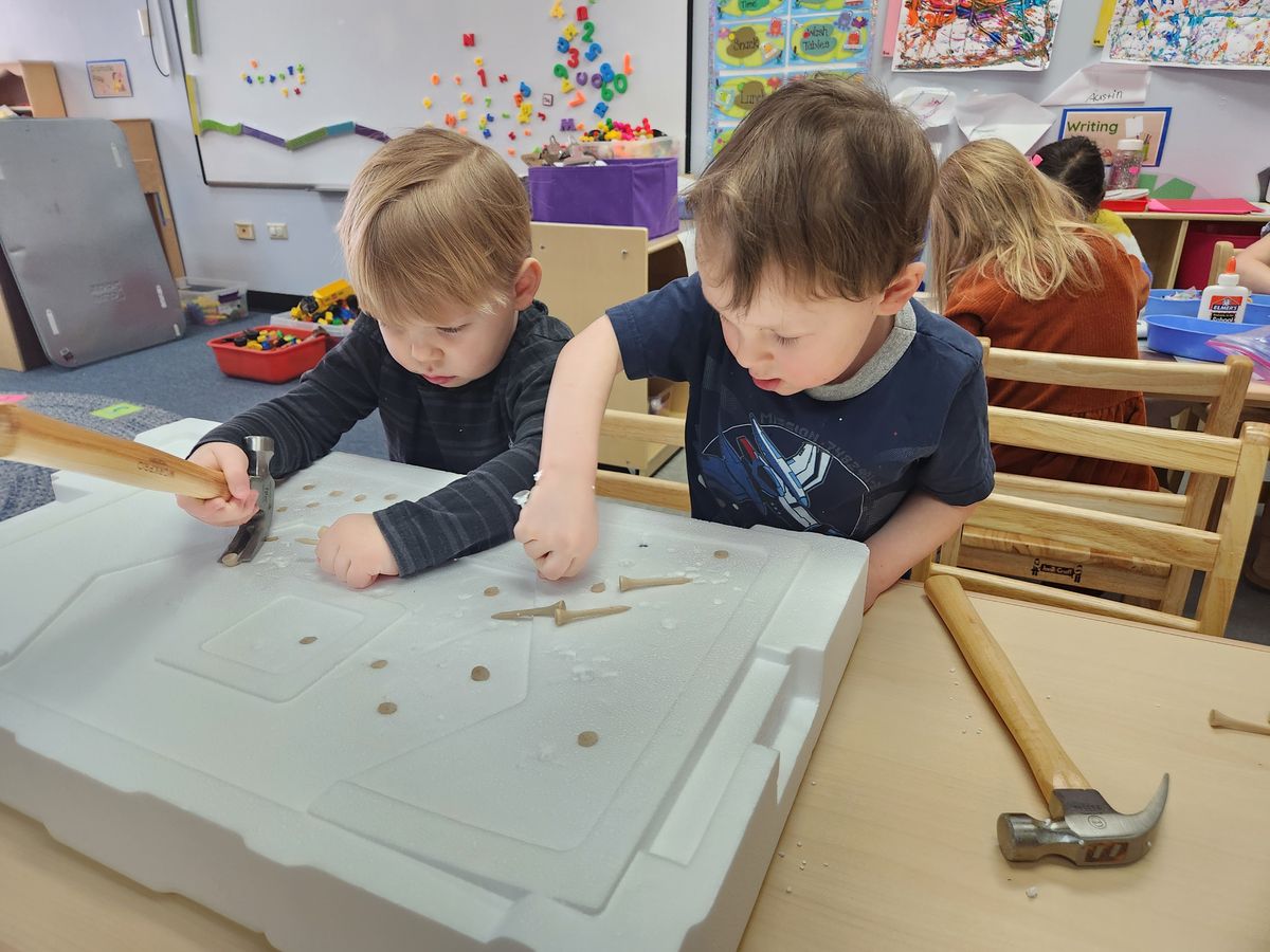 A typical day includes free play at centers designed to engage a child’s natural curiosity. Centers provide opportunities to explore science, books, art, music, sensory activities, writing, building, problem-solving, and heuristic play. Students also learn Kindergarten-readiness skills via direct instruction, small group instruction, and one-on-one instruction.