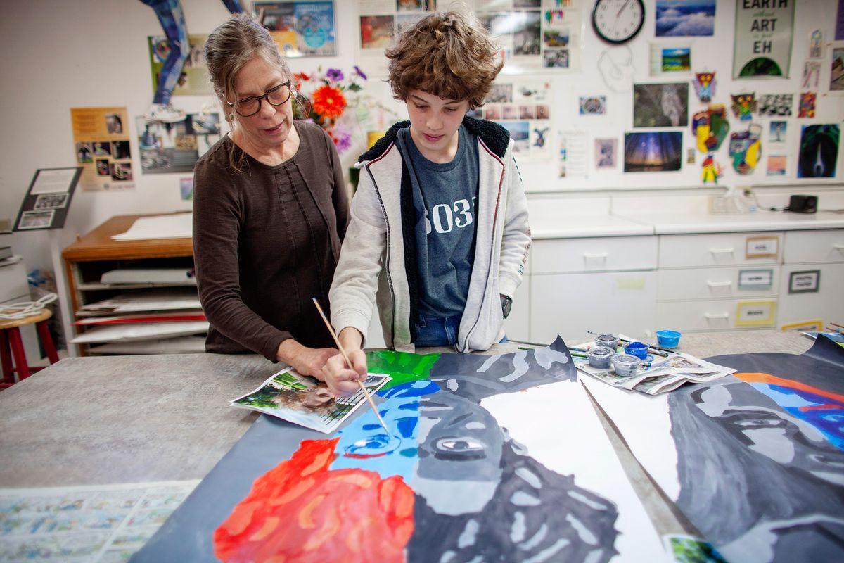 The Middle School Arts Program also hosts an Artist in Residence each year. This time-honored program allows Middle School students the opportunity to expand their artistic horizons. Visiting artists from the community are invited to teach courses on unique topics over a three-week period, exposing students to new mediums and highly skilled arts professionals. It is an opportunity to draw from a community of experts and professionals during a period of short-term, but intensive study, including a wide range of disciplines that dive deep into theatre, music, dance, sculpture, painting, and much more.
