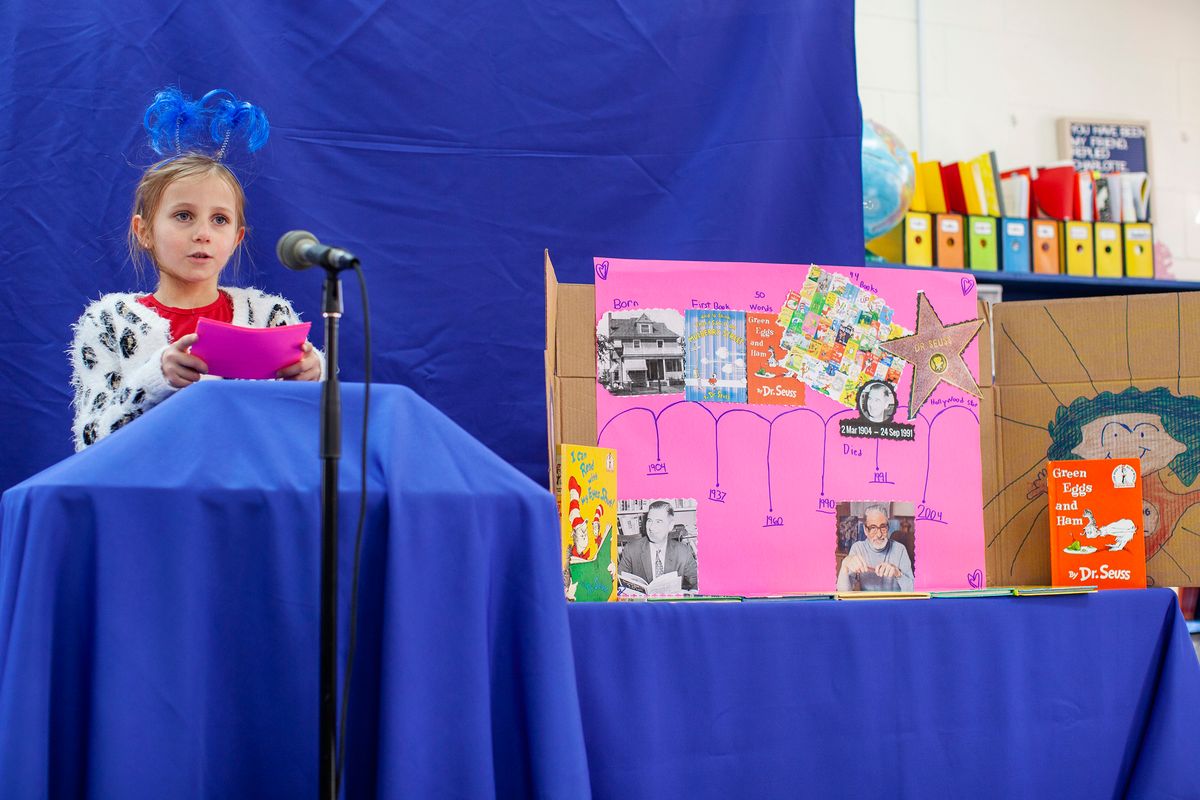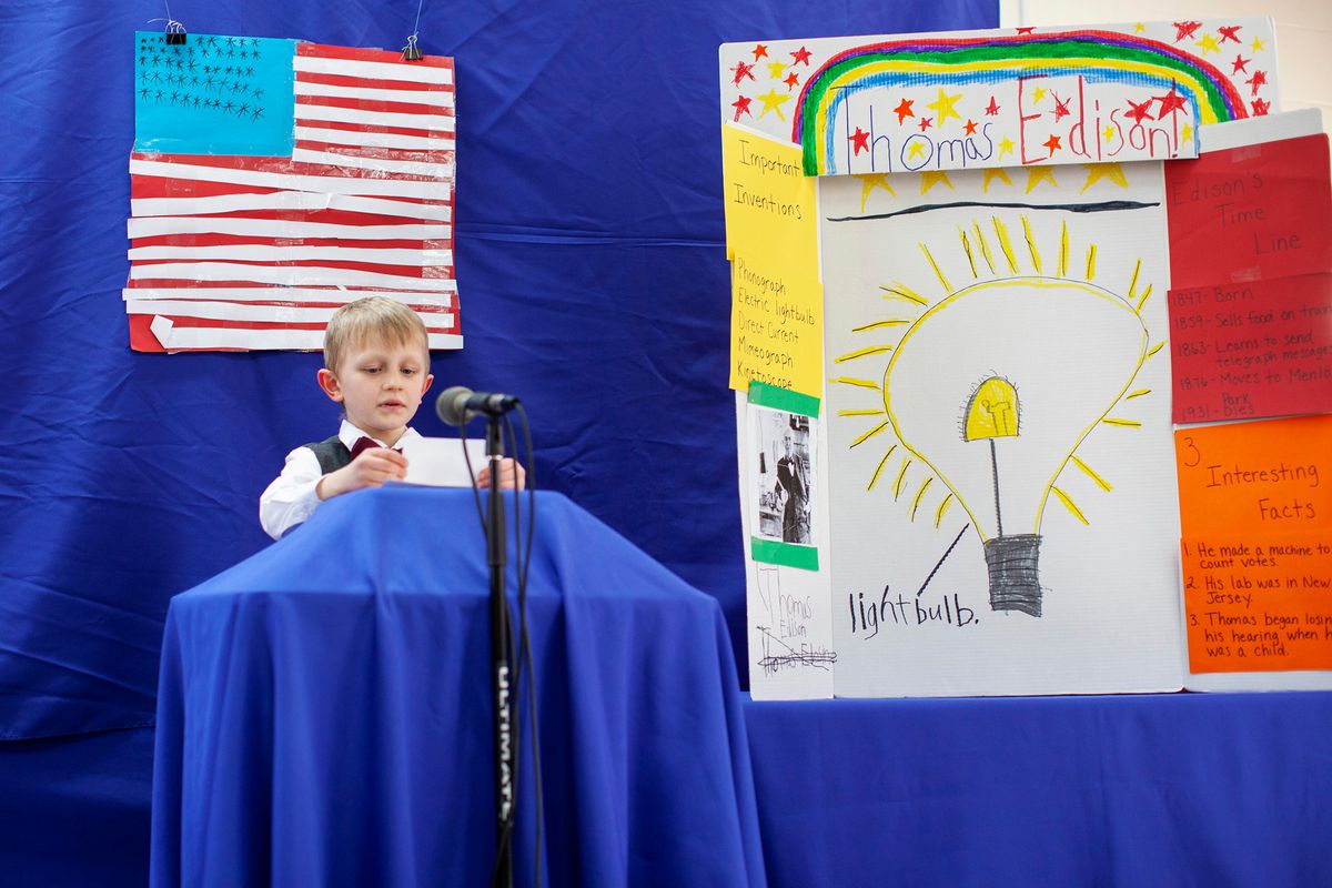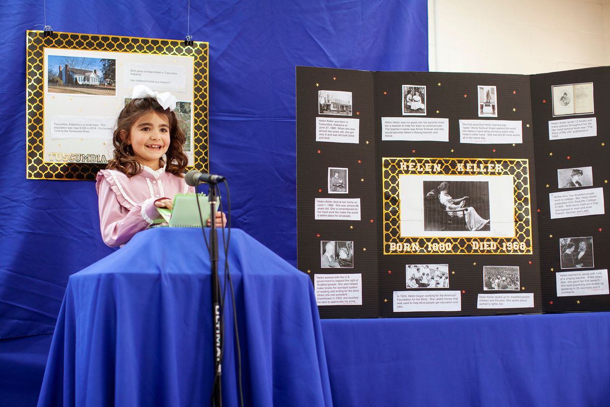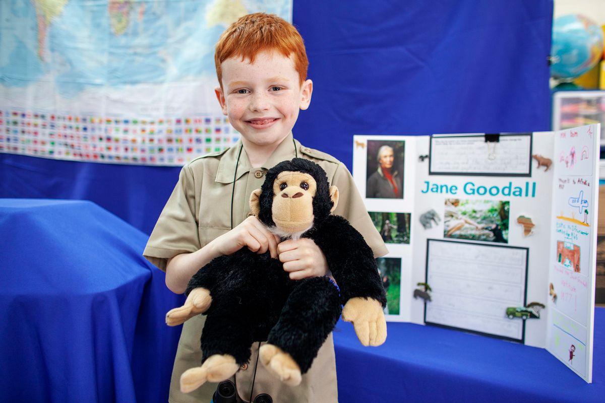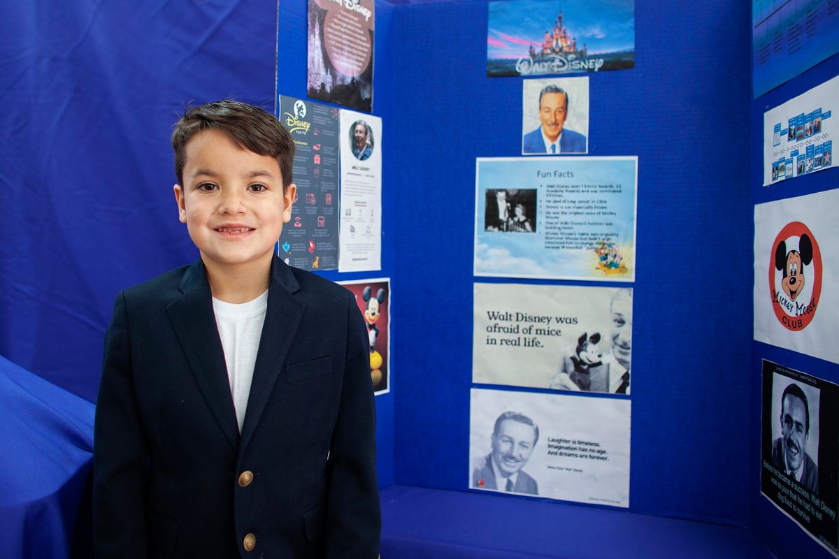Each year, first-grade students participate in the research project People Who Changed the World – formerly known as Famous Americans – a longtime tradition spanning three decades. This milestone marks the first public speaking experience for young Kodiaks.