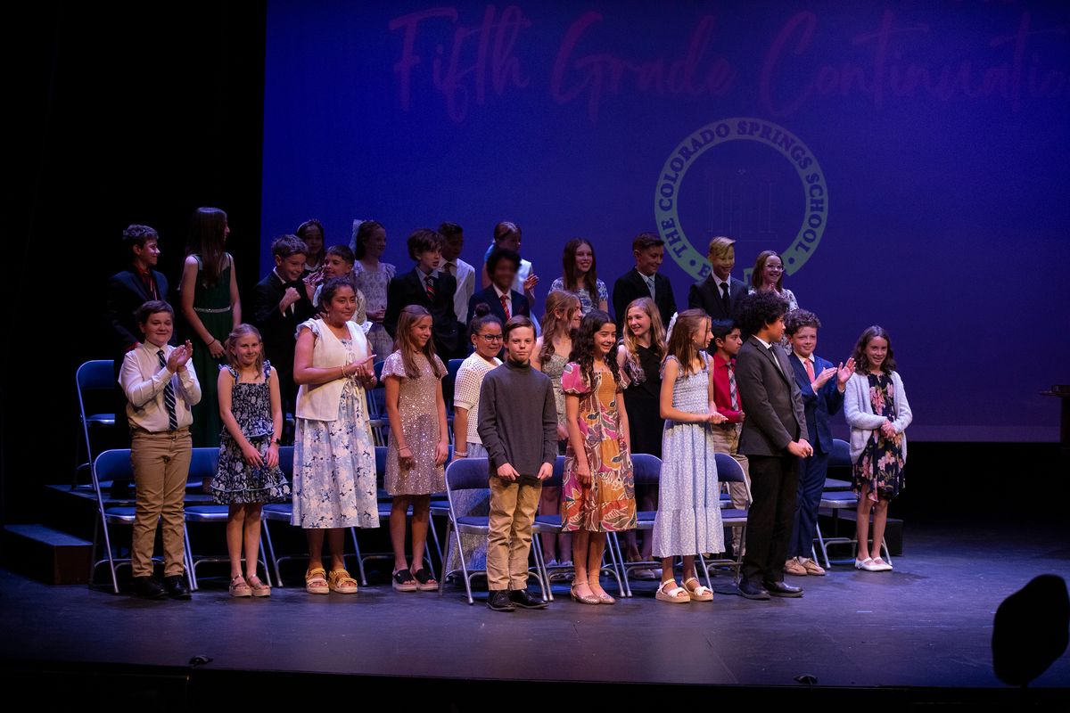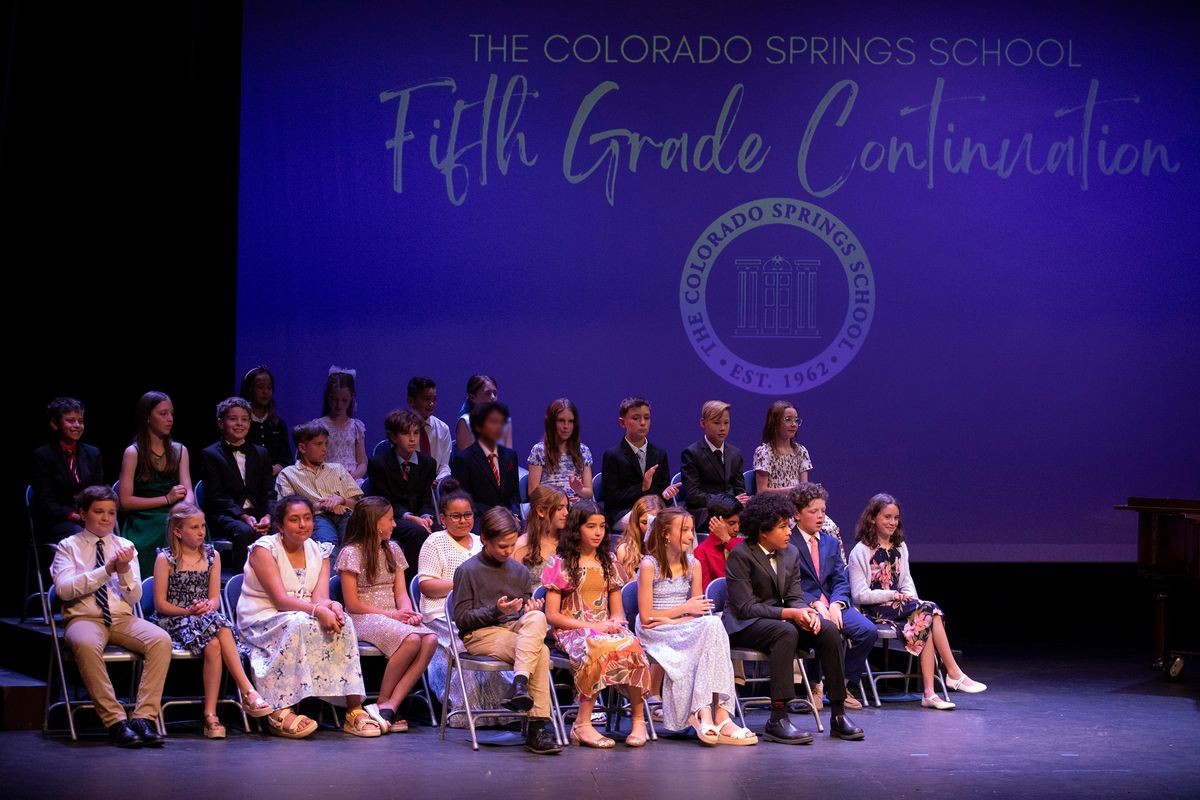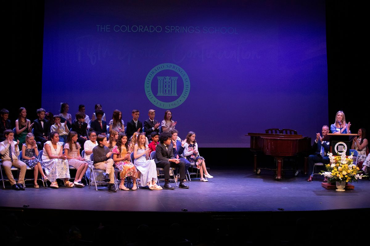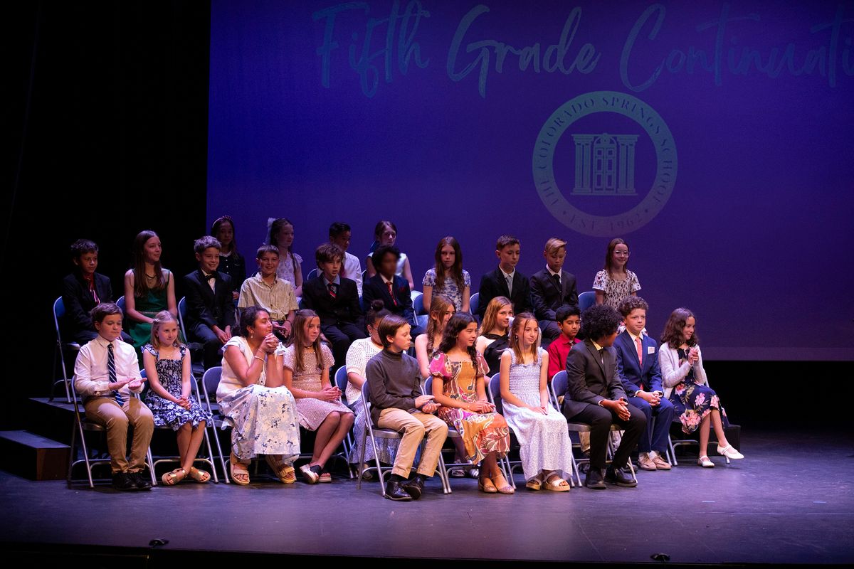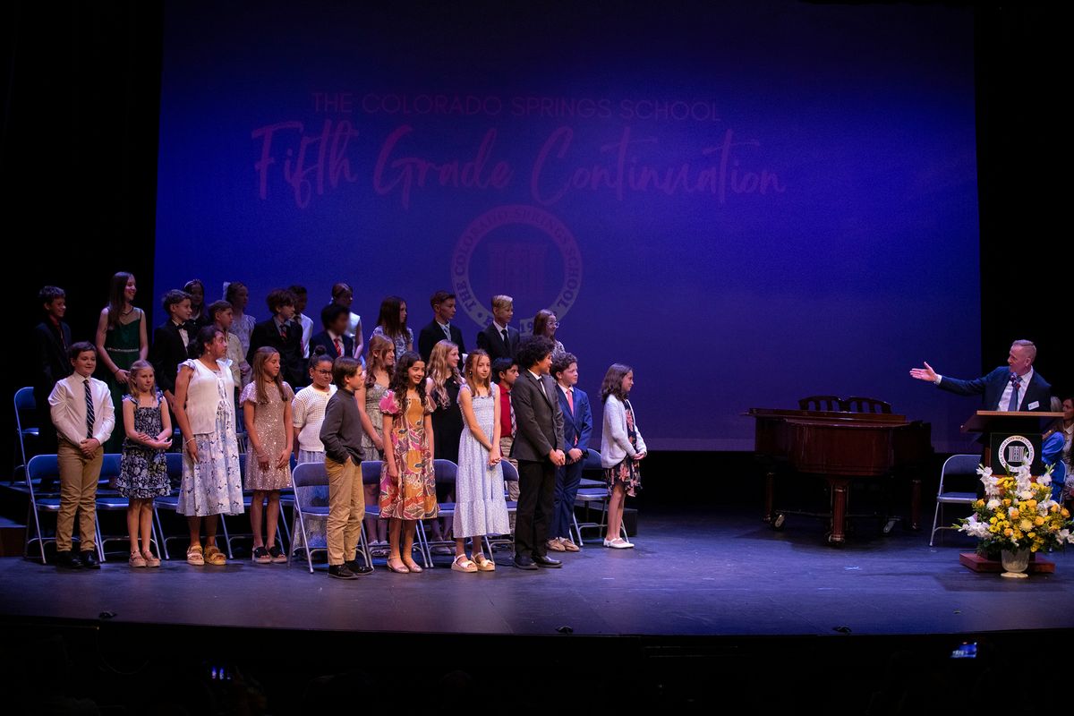 On May 20, 2025, parents, students, faculty, and staff celebrated the Class of 2032 at The Colorado Springs School's 48th Annual Fifth Grade Continuation Ceremony in the Louisa Performing Arts Center.