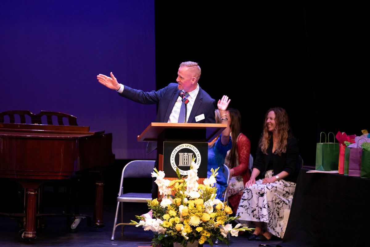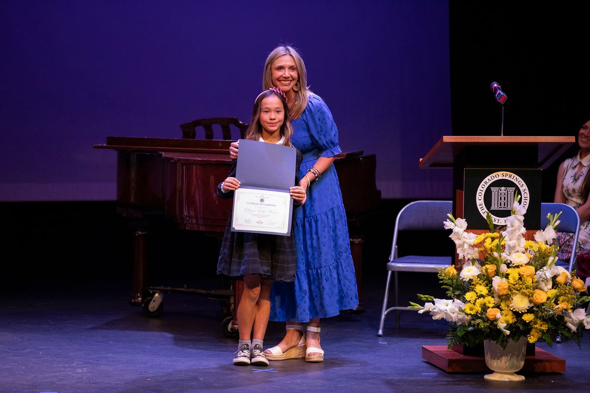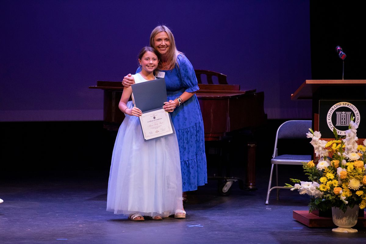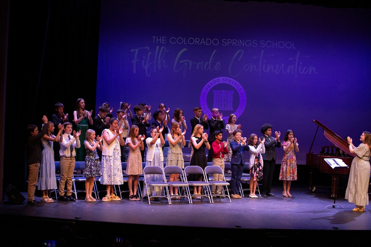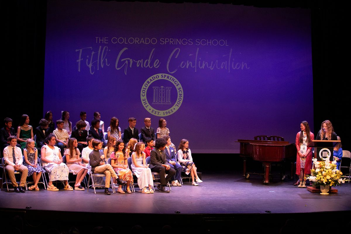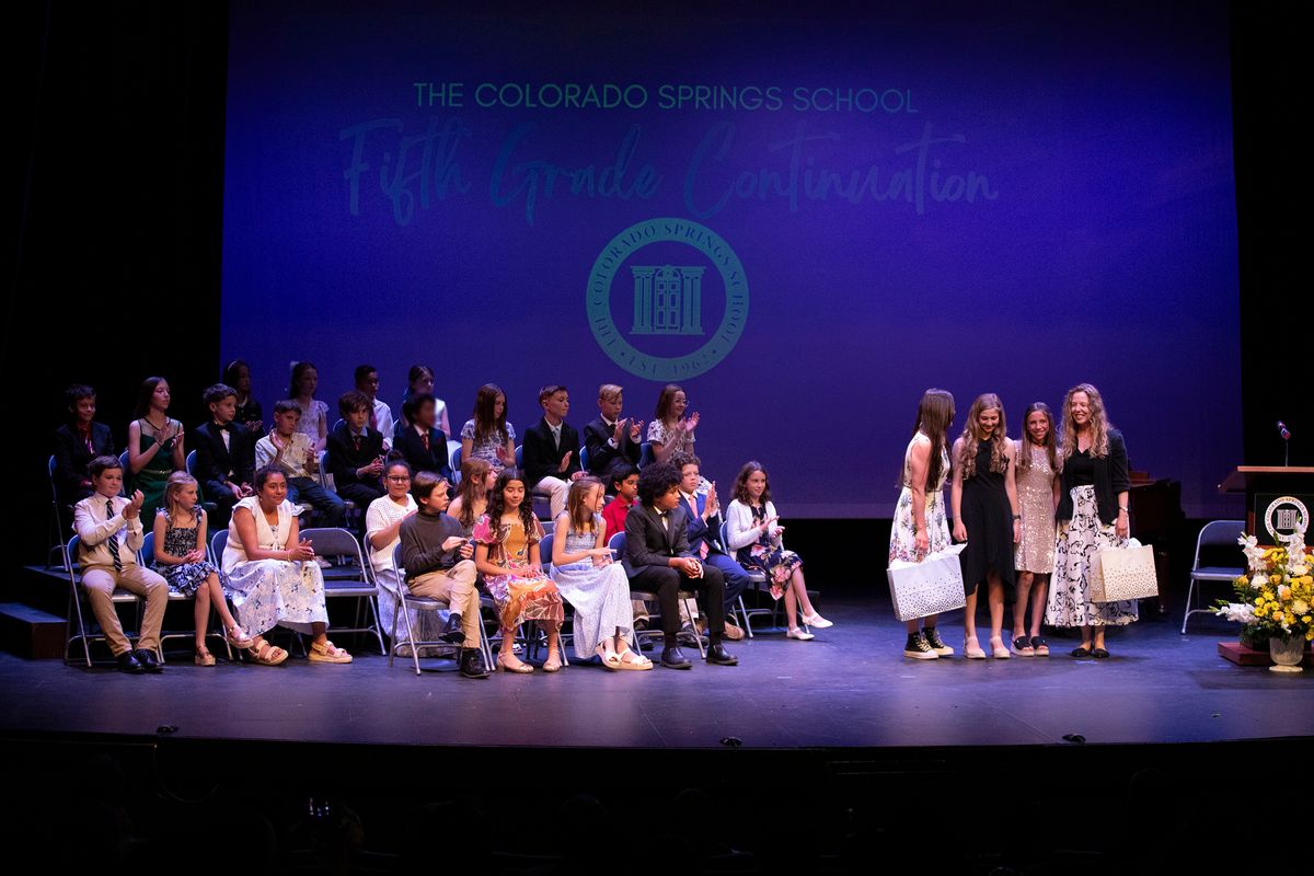 On May 20, 2025, parents, students, faculty, and staff celebrated the Class of 2032 at The Colorado Springs School's 48th Annual Fifth Grade Continuation Ceremony in the Louisa Performing Arts Center.