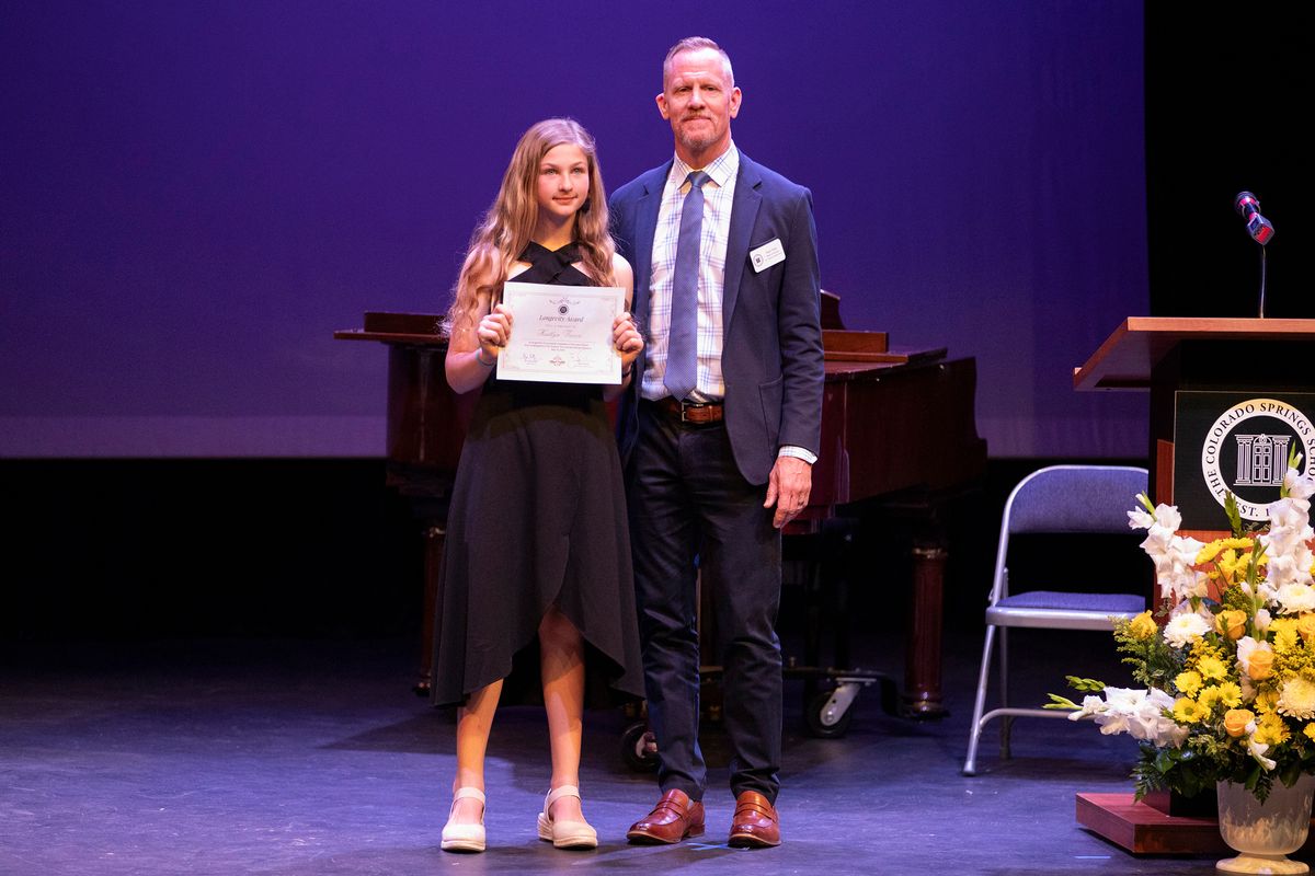 "Integrity means to do the right thing when nobody's looking, yes, but it means so much more than that, too," Clark said. "It means valuing core intentions, even when it won’t seem like it'll matter. It means fighting our everyday silent battles and staying vigilant even when it seems the outcomes will be irrelevant. And that, that is a true virtue. I think that every one of these 5th-grade students has become an embodiment of that virtue, showing merit even in the face of the most daunting silent tasks, and I am proud to say I am part of this class."