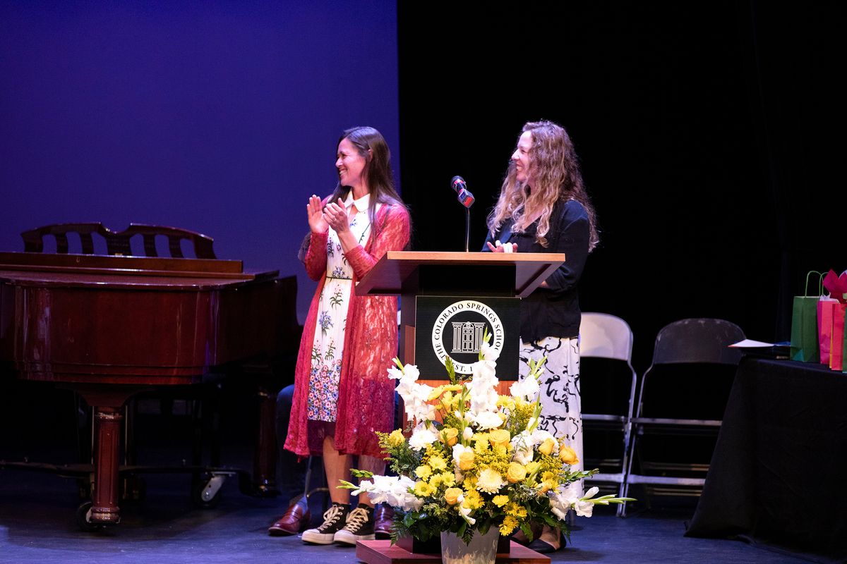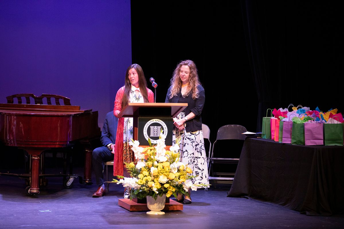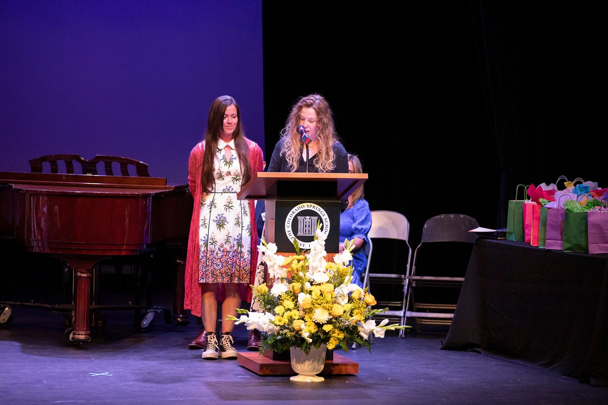 Fifth-grade Teachers Reanna McConnell & Bethany Wingo read tributes about each student, highlighting their unique talents and personalities that created a vibrant, unforgettable class family.
