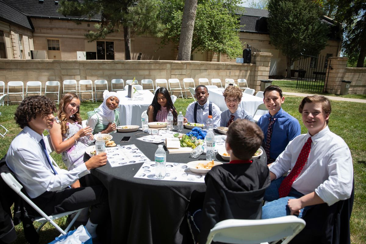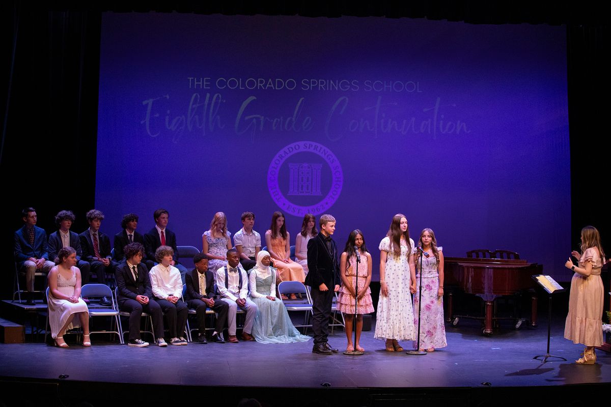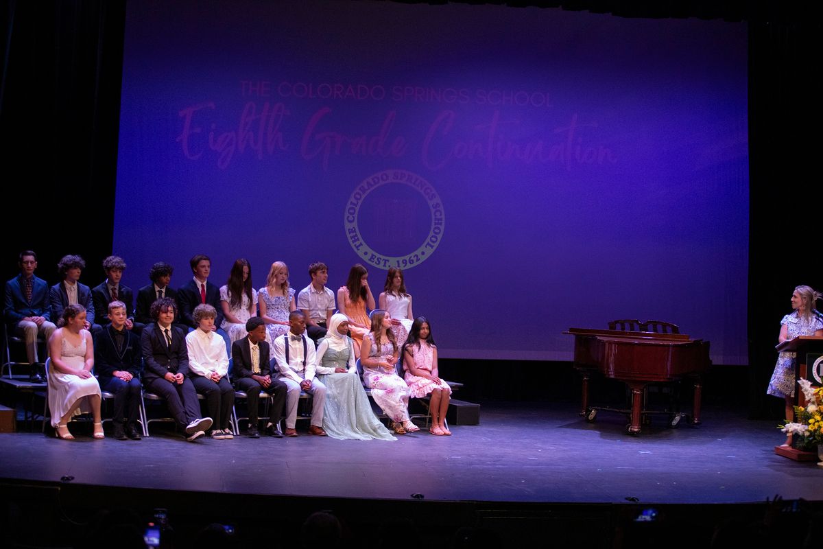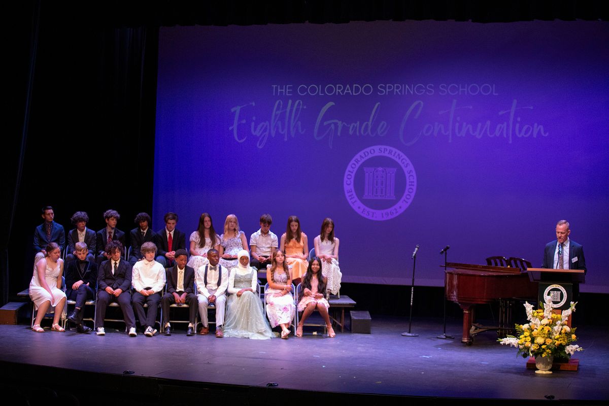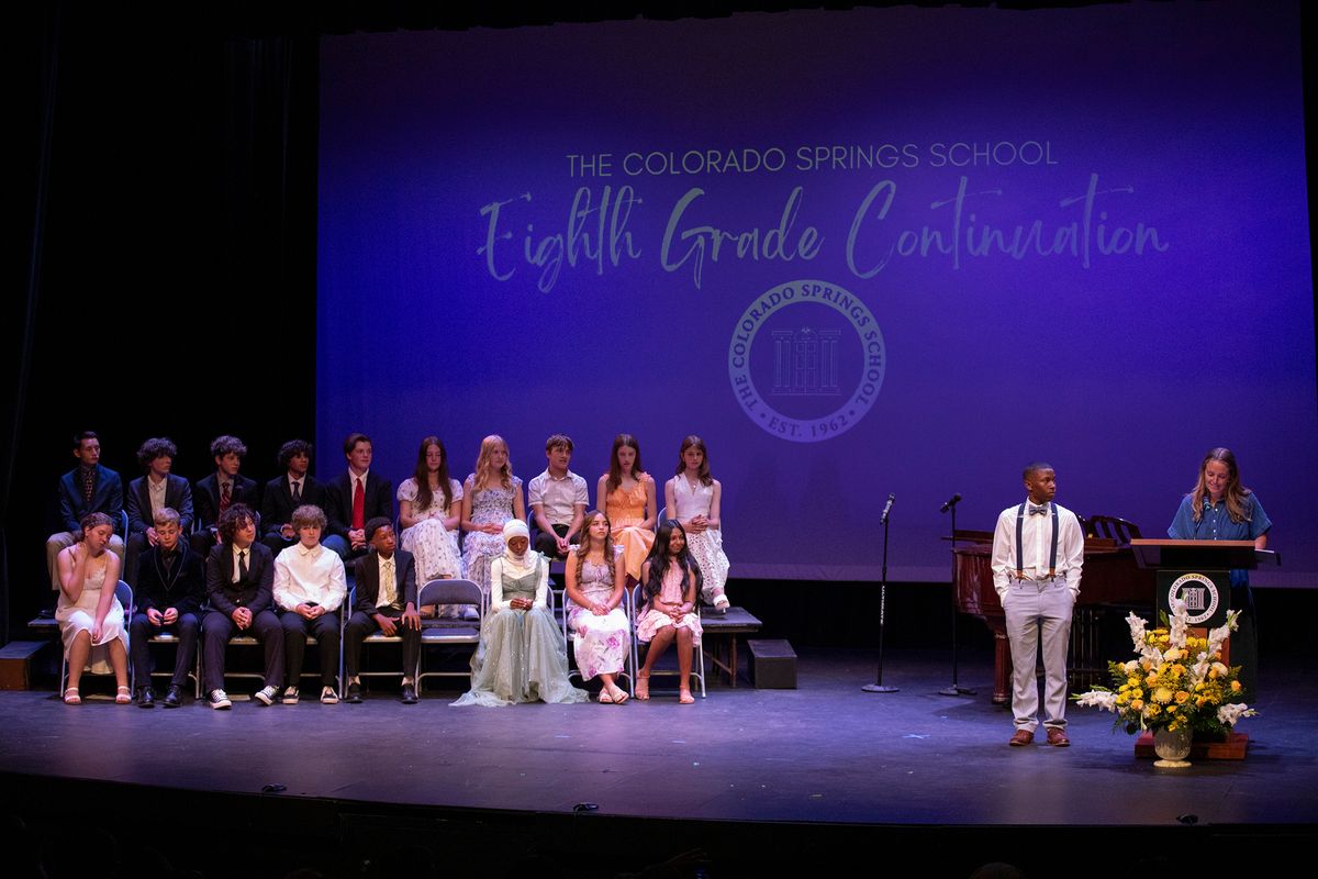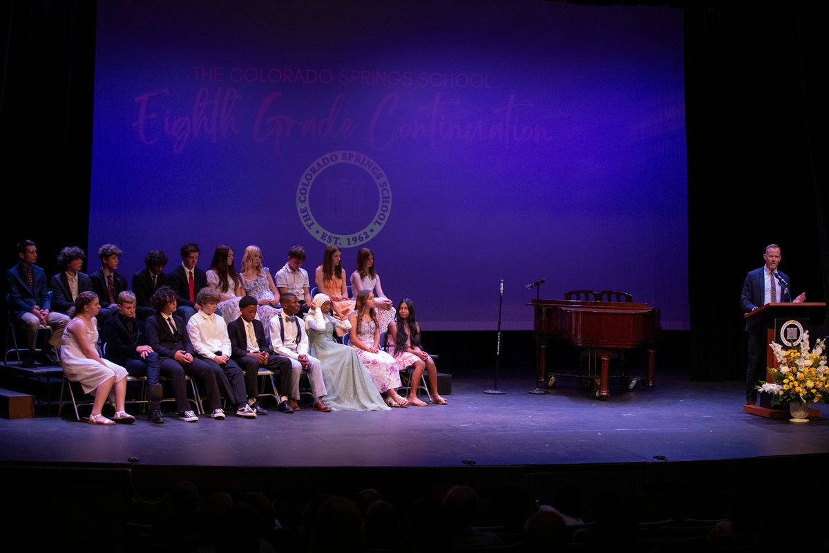 On May 21, 2025, eighth-grade students and their families enjoyed a picnic on the Carriage House lawn before gathering in the Louisa Performing Arts Center for The Colorado Springs School’s 48th Annual Eighth Grade Continuation Ceremony, celebrating the Class of 2029 alongside faculty and staff.