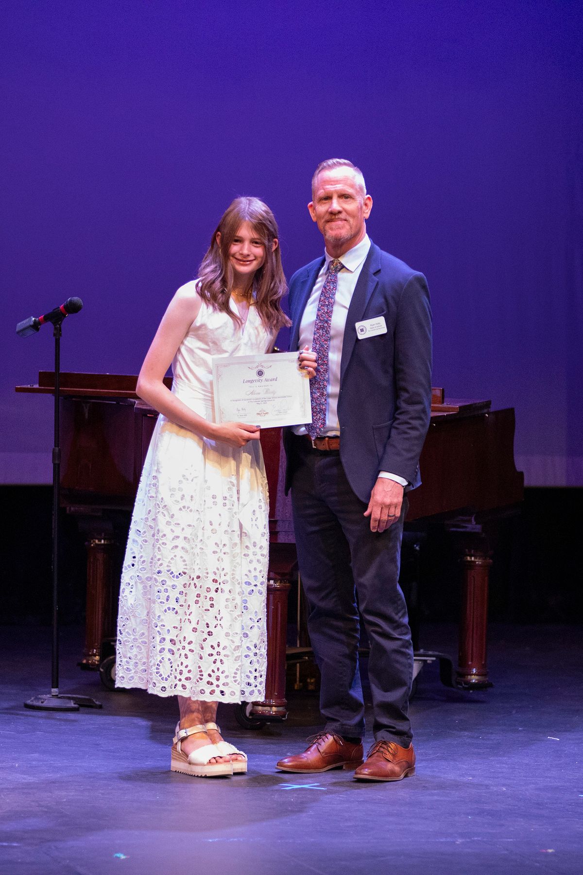 Head of School Dr. Ryan Kelly presented Longevity Awards to Alexa B., Noah H., Kristen L., Bailey L., and Ethan M. for attending CSS continuously since Kindergarten or earlier.