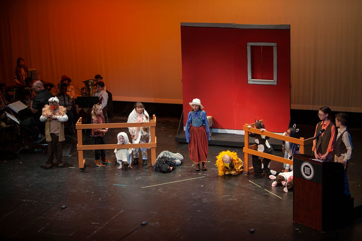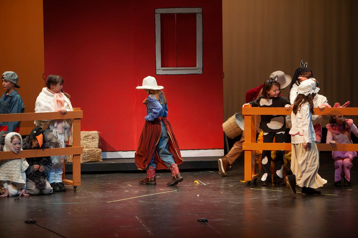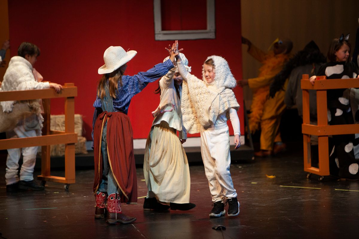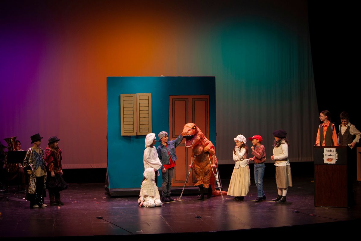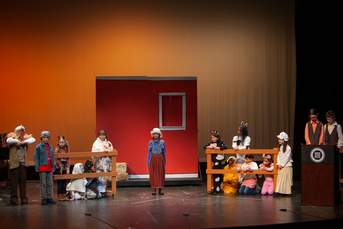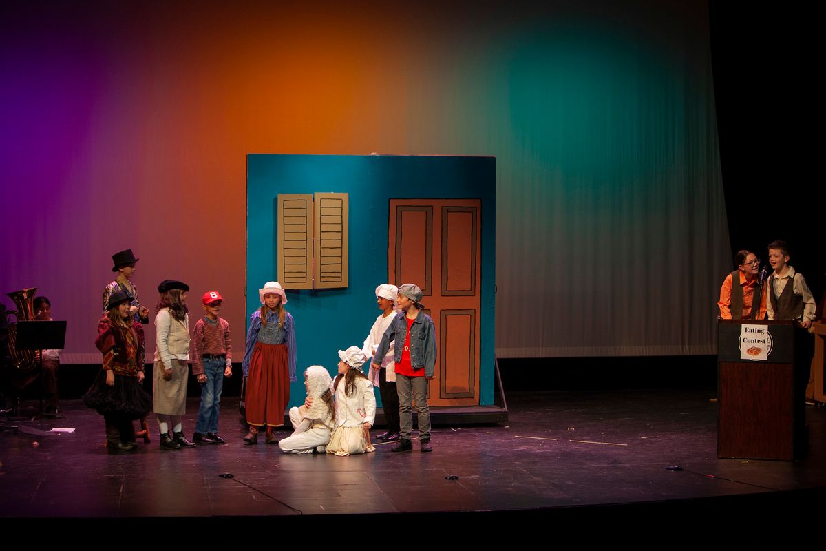 In Aunt Rhodie's Diet, the 3rd and 5th grades were combined. While 3rd graders worked on lines and characters with Director Rachel Pratt, 5th graders learned and practiced more than 10 songs with Band Director Brent Moorhead to accompany the script. The music helps to immerse the audience in this funny play about farmer and animal-lover Aunt Rhodie as she tries to raise enough money to save her farm. Unfortunately, her very large appetite gets the better of her, and she nearly destroys her farm in the process!