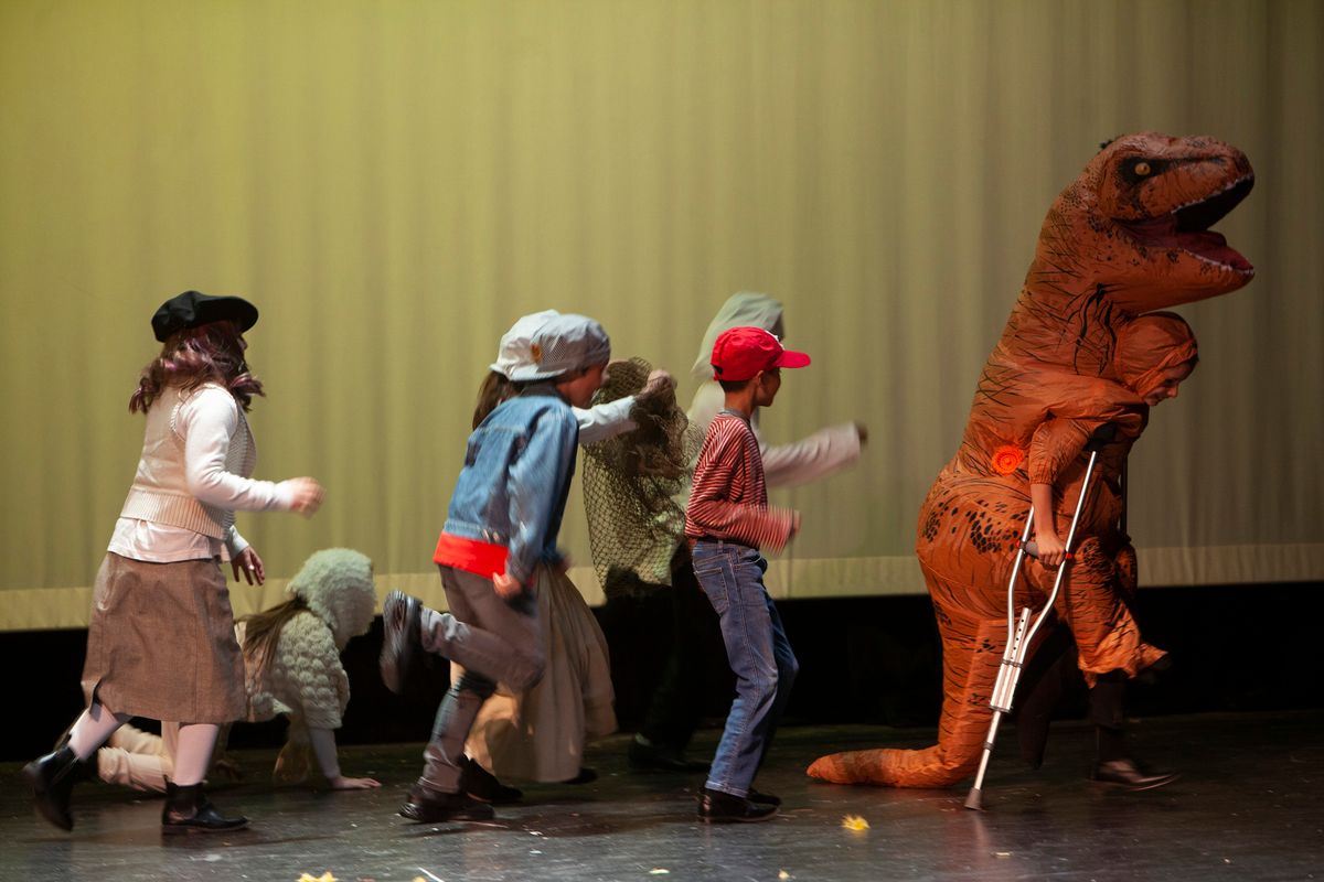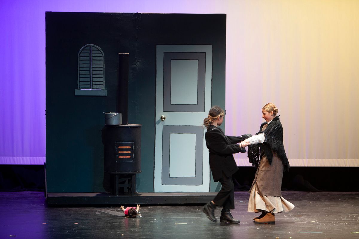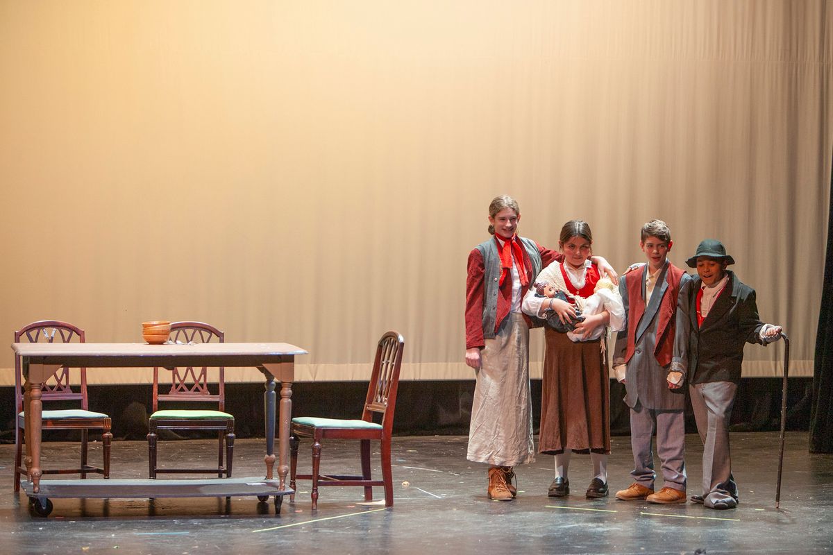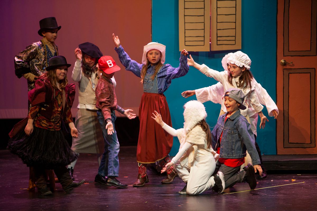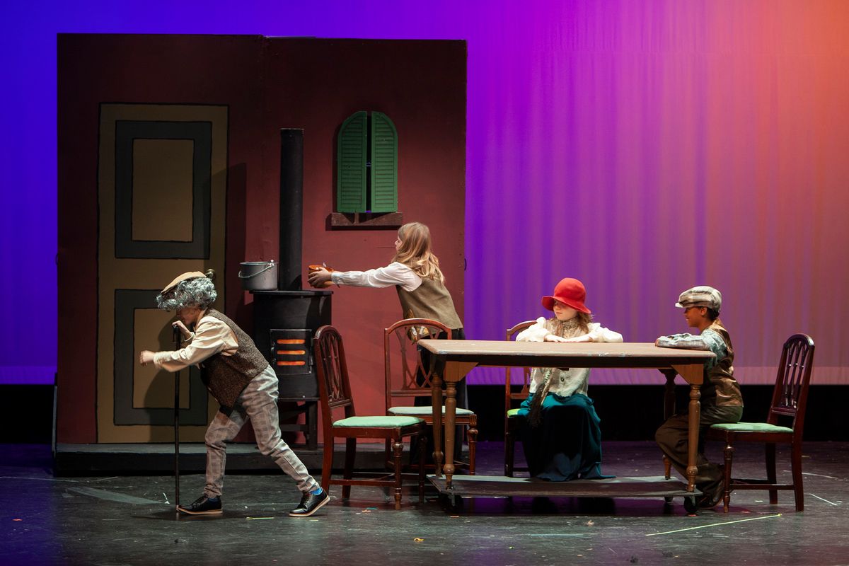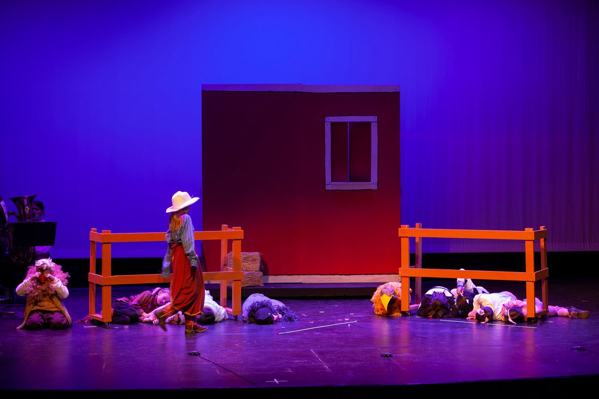 In Aunt Rhodie's Diet, the 3rd and 5th grades were combined. While 3rd graders worked on lines and characters with Director Rachel Pratt, 5th graders learned and practiced more than 10 songs with Band Director Brent Moorhead to accompany the script. The music helps to immerse the audience in this funny play about farmer and animal-lover Aunt Rhodie as she tries to raise enough money to save her farm. Unfortunately, her very large appetite gets the better of her, and she nearly destroys her farm in the process!