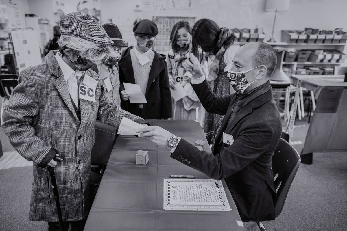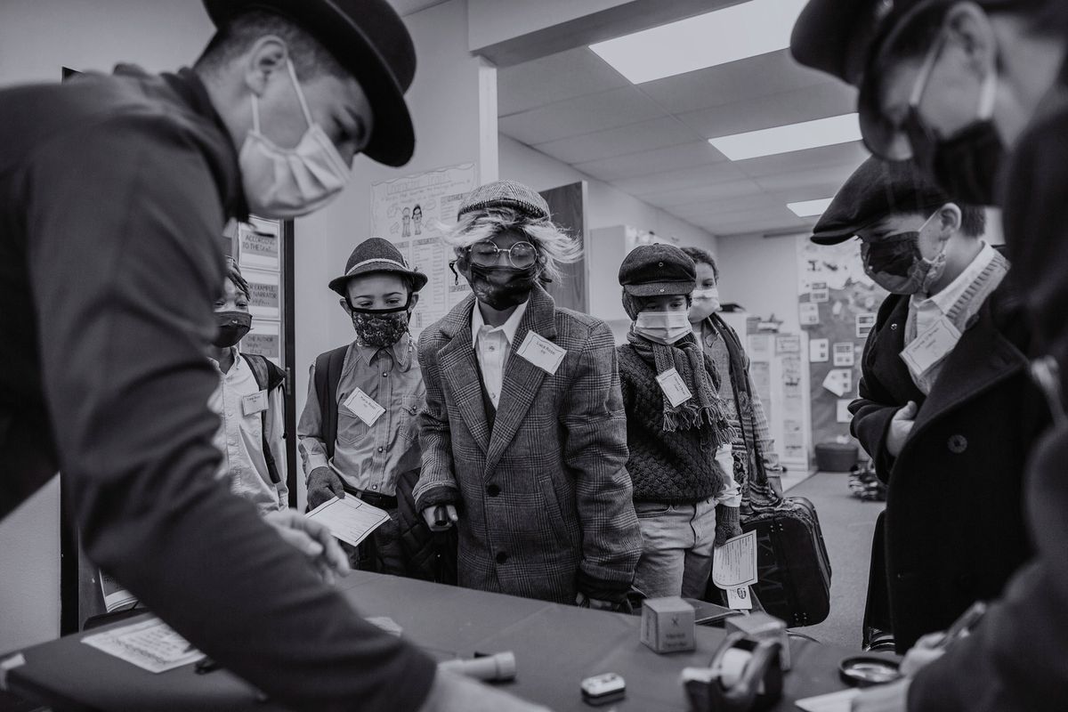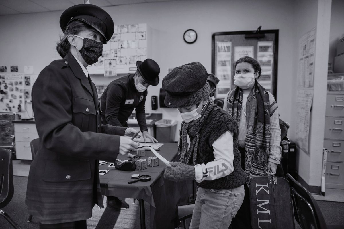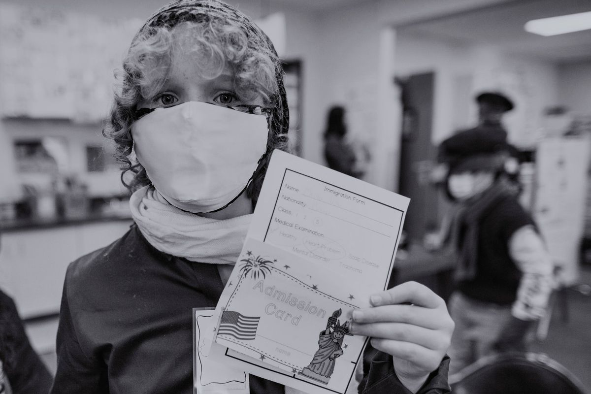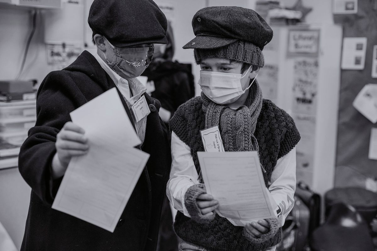 The Class of 2029 dressed in period clothing on Wednesday, January 12, 2022, to participate in the 5th grade annual Ellis Island Simulation. Each year, this hands-on learning experience gives students a glimpse at the trials faced by immigrants in the early 1900s. Playing the role of a fictitious European immigrant, students transitioned step-by-step through the processing experience witnessed by so many upon arriving at Ellis Island. Rotating through the stations, students were met by faculty and staff volunteers who asked questions regarding their vocational background, character, health, and wealth. At the conclusion, students' answers determined whether they would be admitted to America or deported to their country of origin.