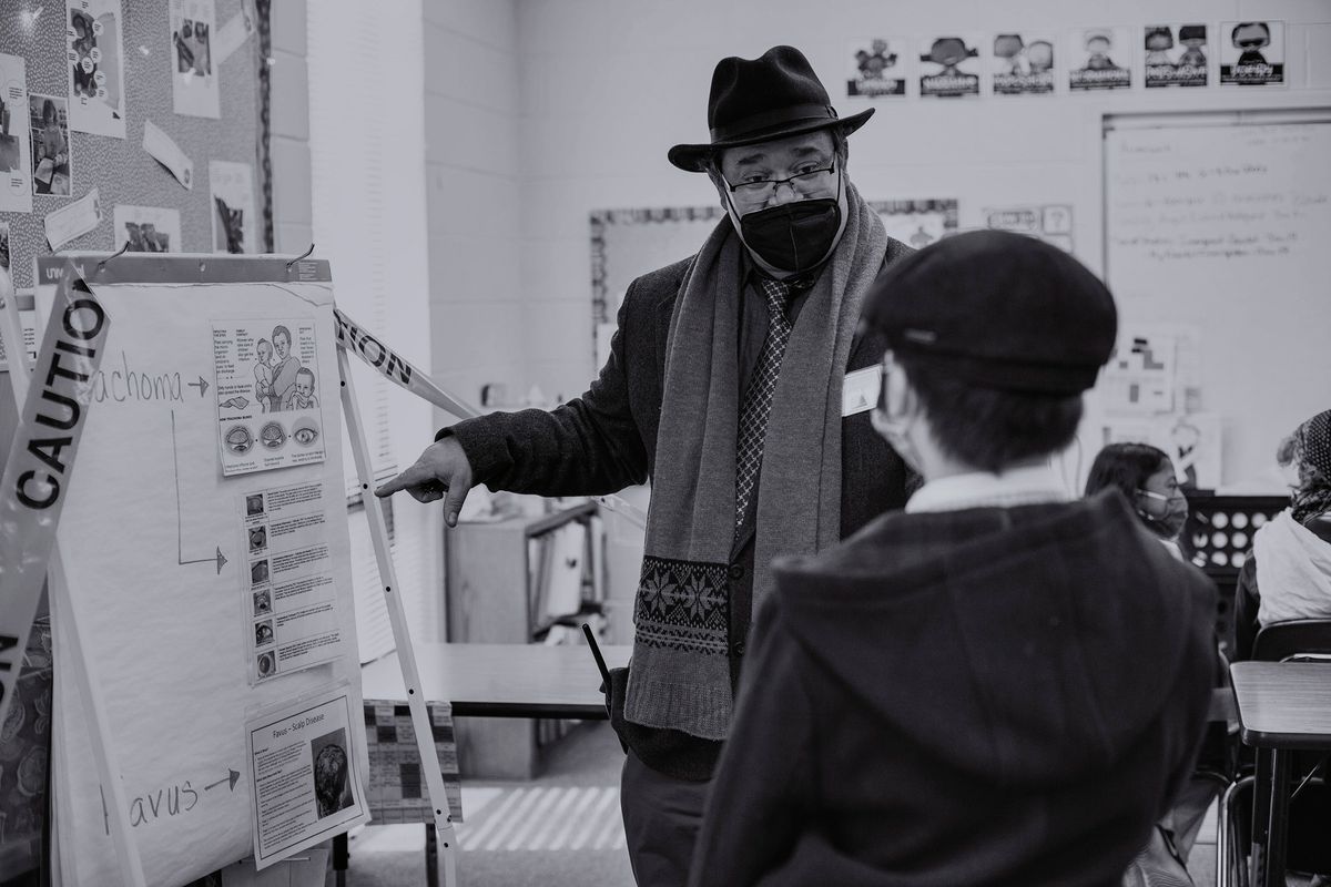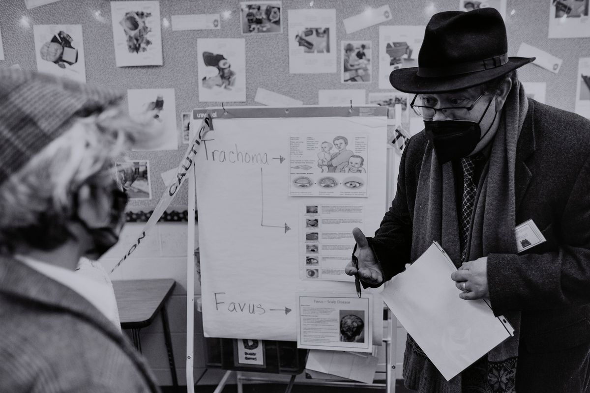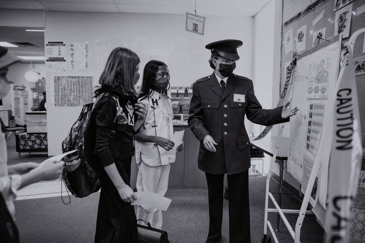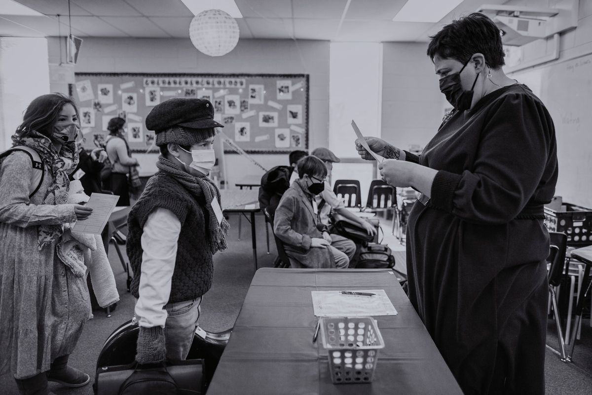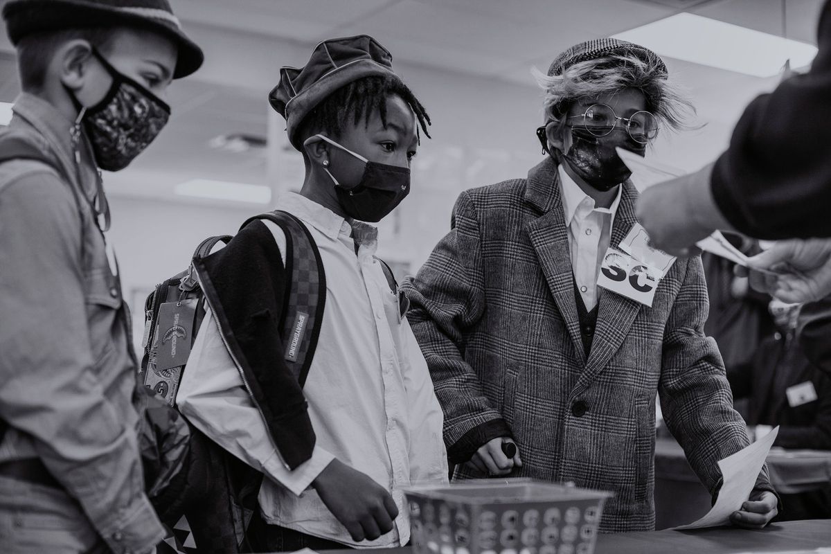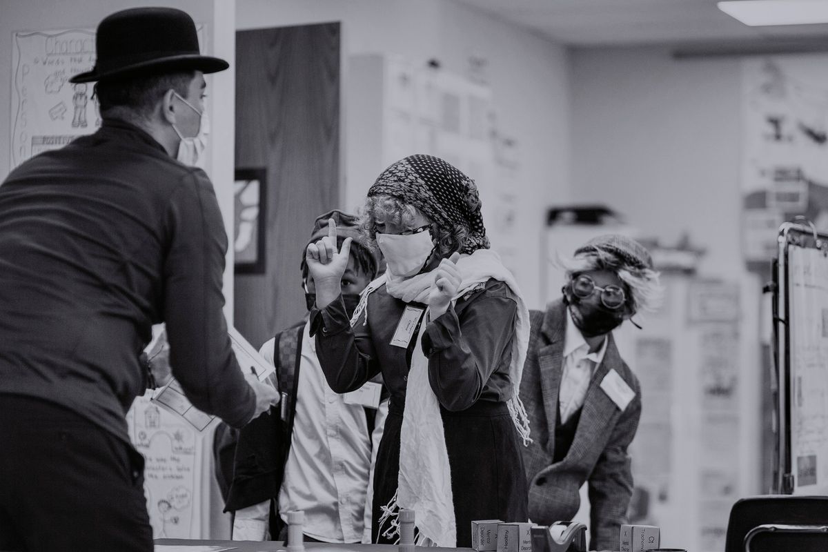 The Class of 2029 dressed in period clothing on Wednesday, January 12, 2022, to participate in the 5th grade annual Ellis Island Simulation. Each year, this hands-on learning experience gives students a glimpse at the trials faced by immigrants in the early 1900s. Playing the role of a fictitious European immigrant, students transitioned step-by-step through the processing experience witnessed by so many upon arriving at Ellis Island. Rotating through the stations, students were met by faculty and staff volunteers who asked questions regarding their vocational background, character, health, and wealth. At the conclusion, students' answers determined whether they would be admitted to America or deported to their country of origin.