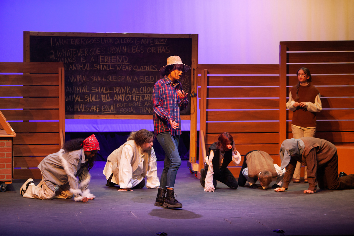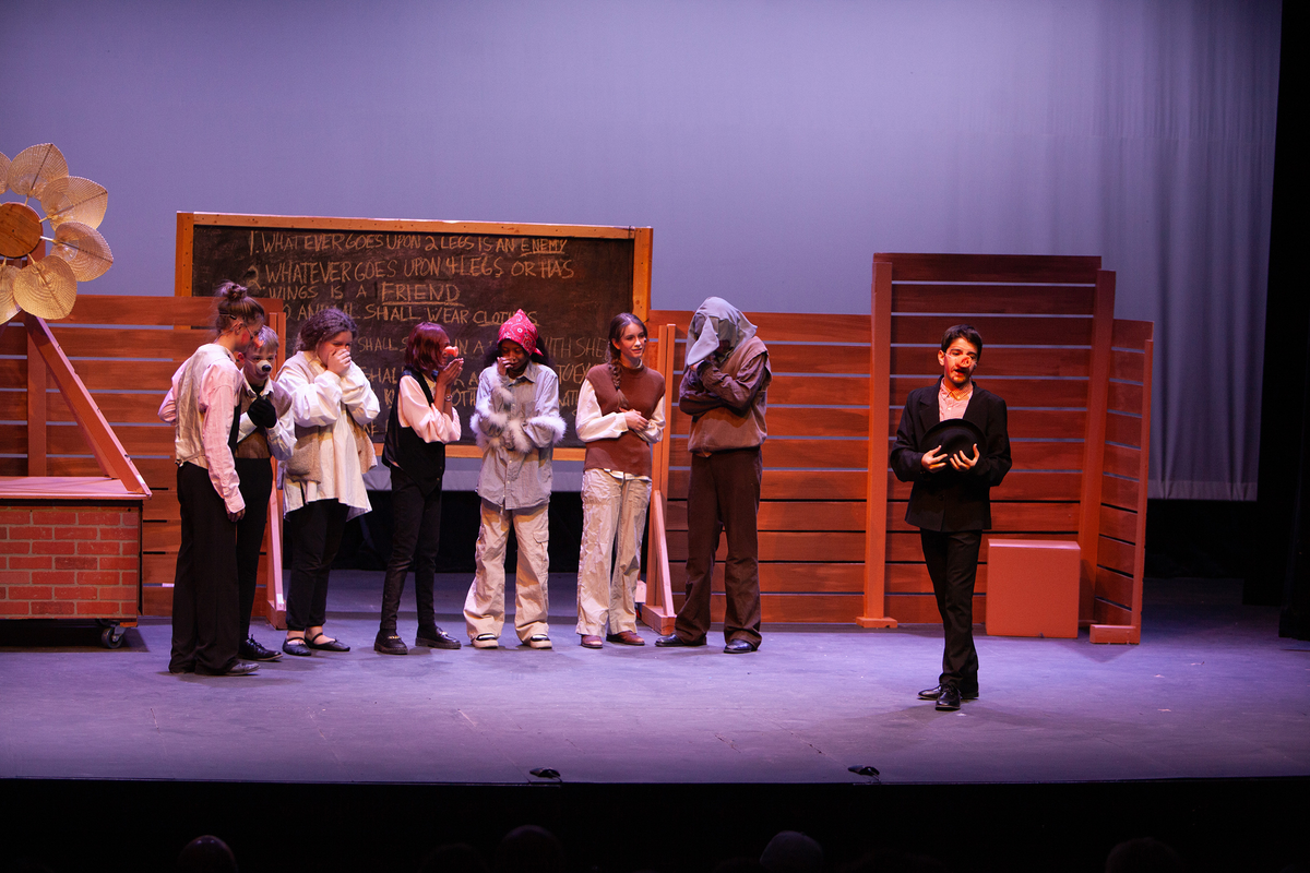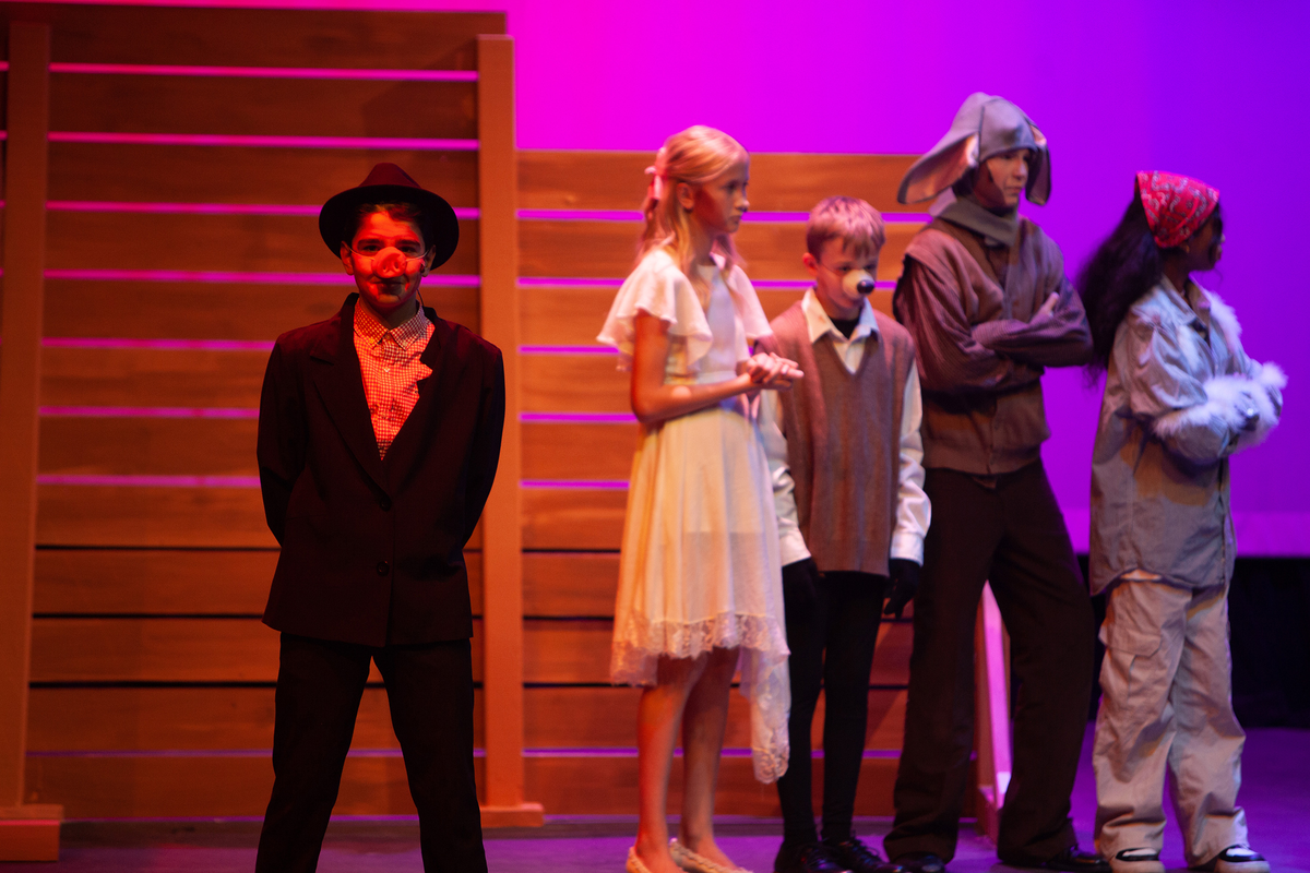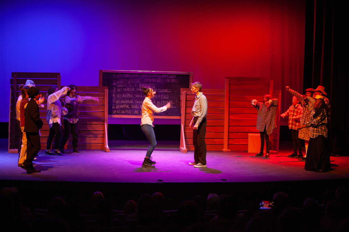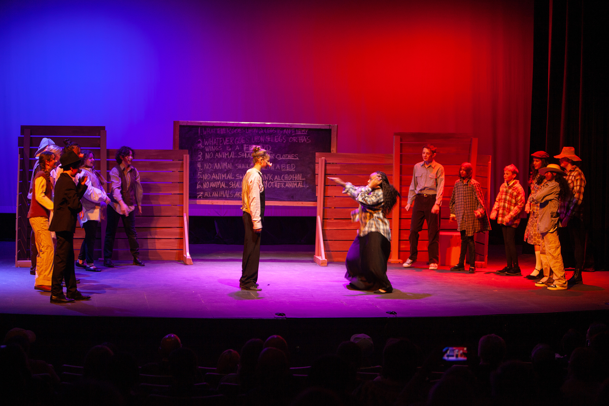 Congratulations to the Middle School cast and crew of George Orwell's Animal Farm for delivering an outstanding performance on Friday, December 1, 2023, in the Louisa Performing Arts Center. This student-driven play was a culmination of theatre arts class. Adapted by Ian Wooldridge, the play depicts a group of animals who rebel against humans and become their own masters. Things work smoothly at first, and the animals revel in their freedom and equality. However, the pigs become power-hungry and become the new oppressors of the animals and become indistinguishable from humans.