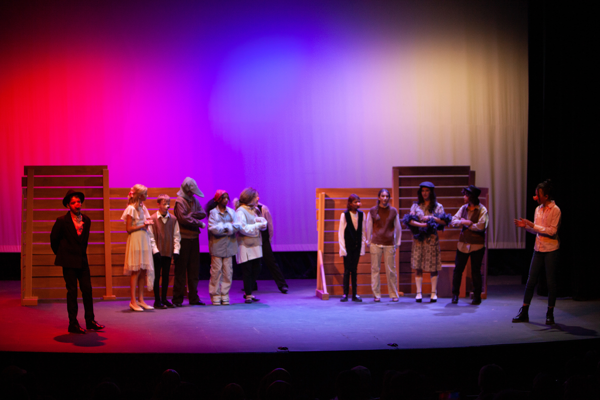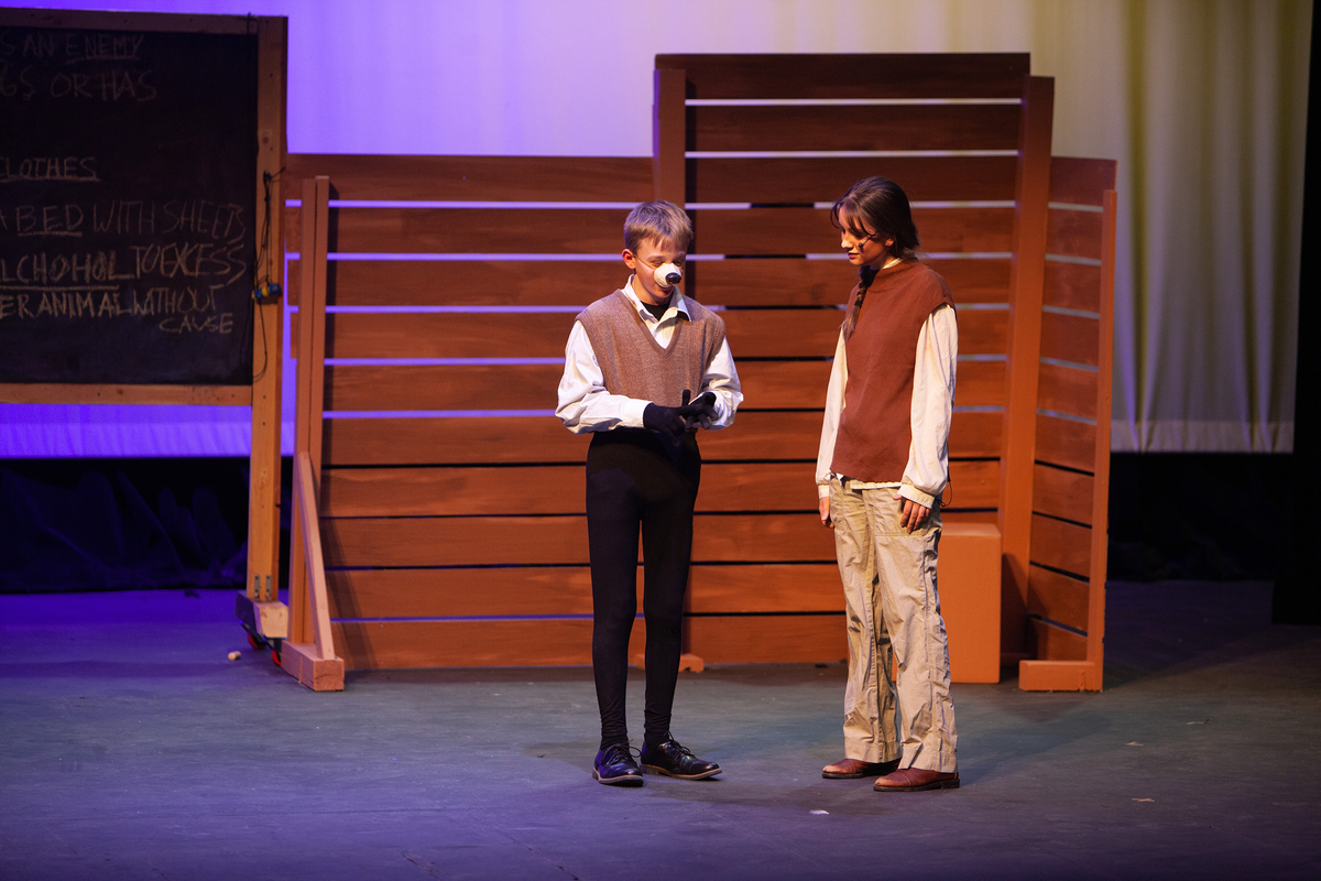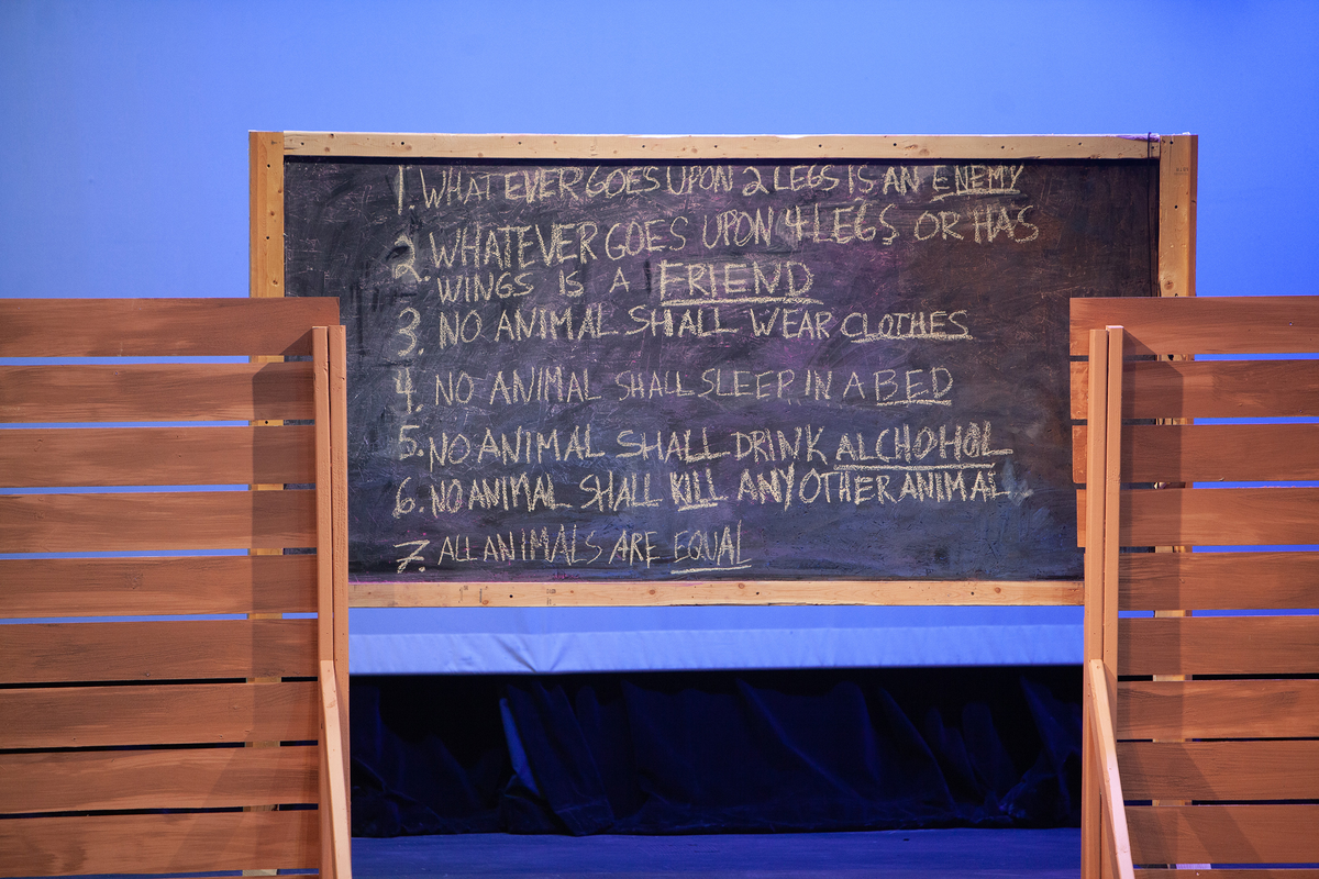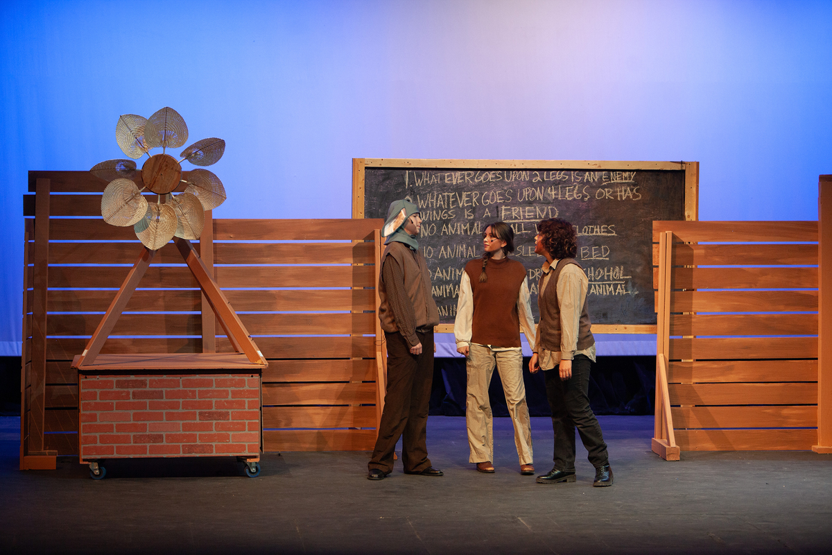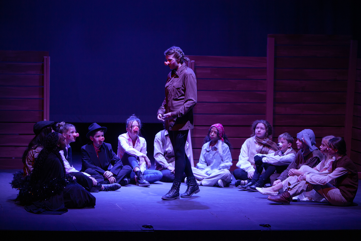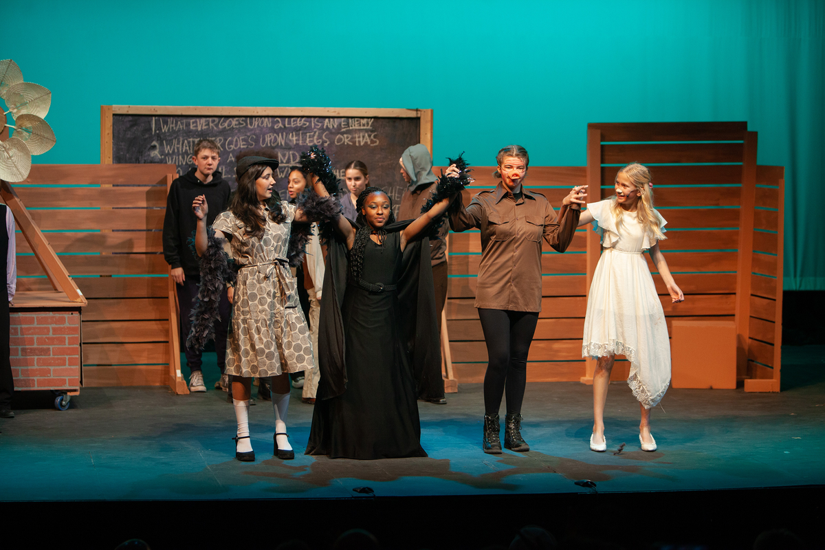 Congratulations to the Middle School cast and crew of George Orwell's Animal Farm for delivering an outstanding performance on Friday, December 1, 2023, in the Louisa Performing Arts Center. This student-driven play was a culmination of theatre arts class. Adapted by Ian Wooldridge, the play depicts a group of animals who rebel against humans and become their own masters. Things work smoothly at first, and the animals revel in their freedom and equality. However, the pigs become power-hungry and become the new oppressors of the animals and become indistinguishable from humans.