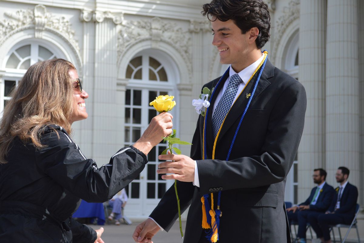 Families of each graduate were then called to the Trianon Terrace, where they presented their senior with a single-stem rose recognizing the ways in which their student has thrived at CSS. As a special tribute to another member of the graduating class, Lile Mullins, who passed away in the 1st grade, Lifer Andrew Hedden spoke of the impact Lile continues to have on his own life to this day before presenting Lile's family with a rose alongside Lifer Theo Marple. "I genuinely have a guardian angel watching over me no matter the circumstances. He and I shared a very short time at CSS together, but he has continued to influence my ventures and choices on a daily basis," said Andrew.