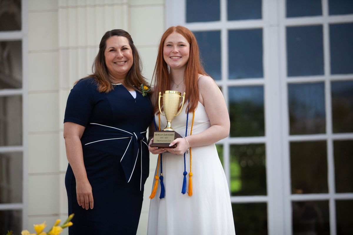 Additional student awards, including the Faculty Cup and the Margaret White Campbell Award, were granted to graduates Morgan Jarolimek and Sofia Ortega, respectively (see Student Awards below) for their community involvement and overall sense of character. In honor of the closing of CSS's 60th Anniversary year, the latter award was presented by two very special guests – Class of ’65 alumnae, and two of the first recipients of the Margaret White Campbell Award – Anne Clausen Trinajstich '65 and Betsy Long Jones '65.
