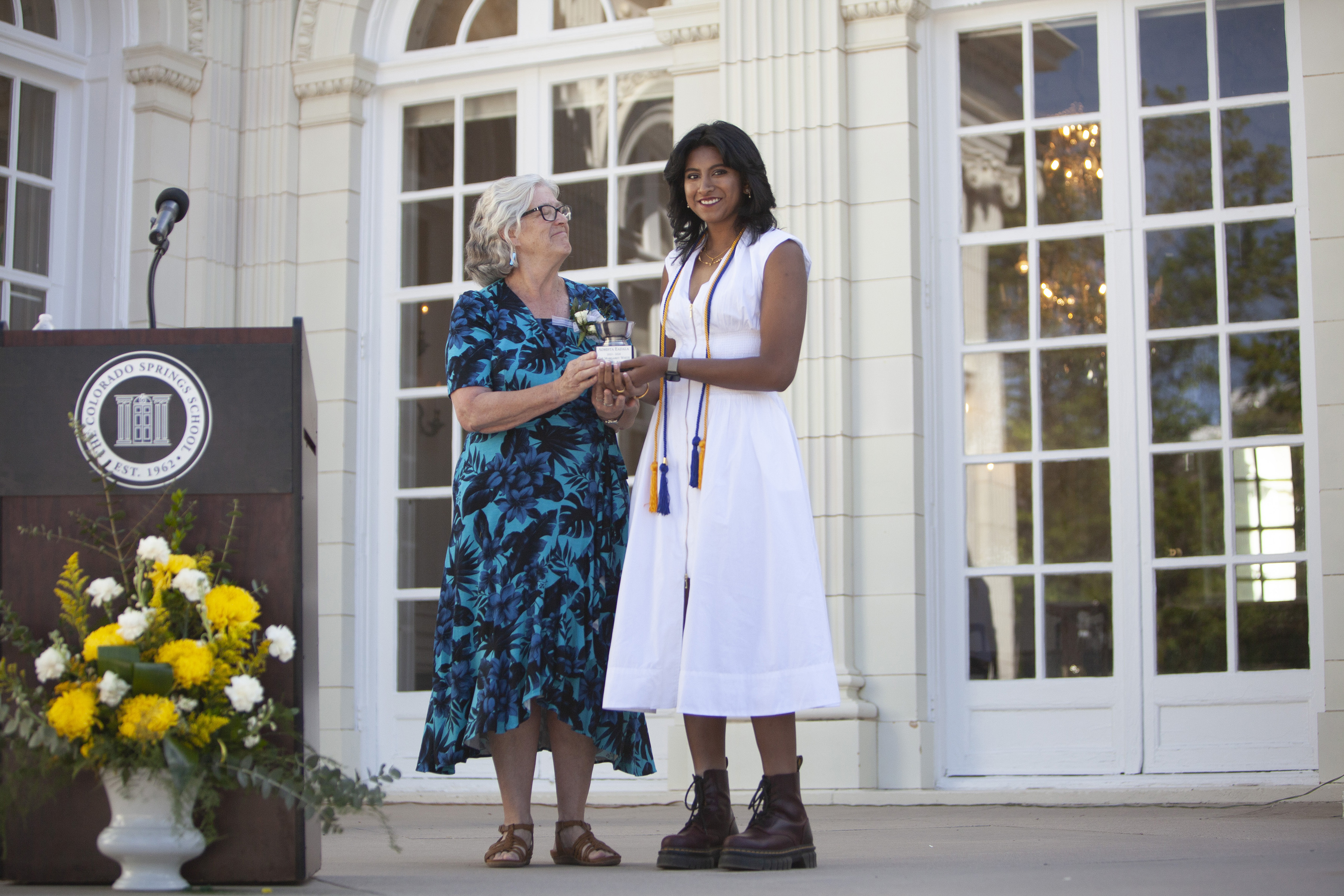 Presented in honor of the founding headmistress of The Colorado Springs School, The Margaret White Campbell Award today is granted to one student on behalf of the Upper School Faculty and recognizes academic excellence, leadership, service to the CSS community, and general character. Each year, this award is presented to the senior deemed by the Upper School faculty as that young person who best exemplifies the highest model of excellence in all areas.