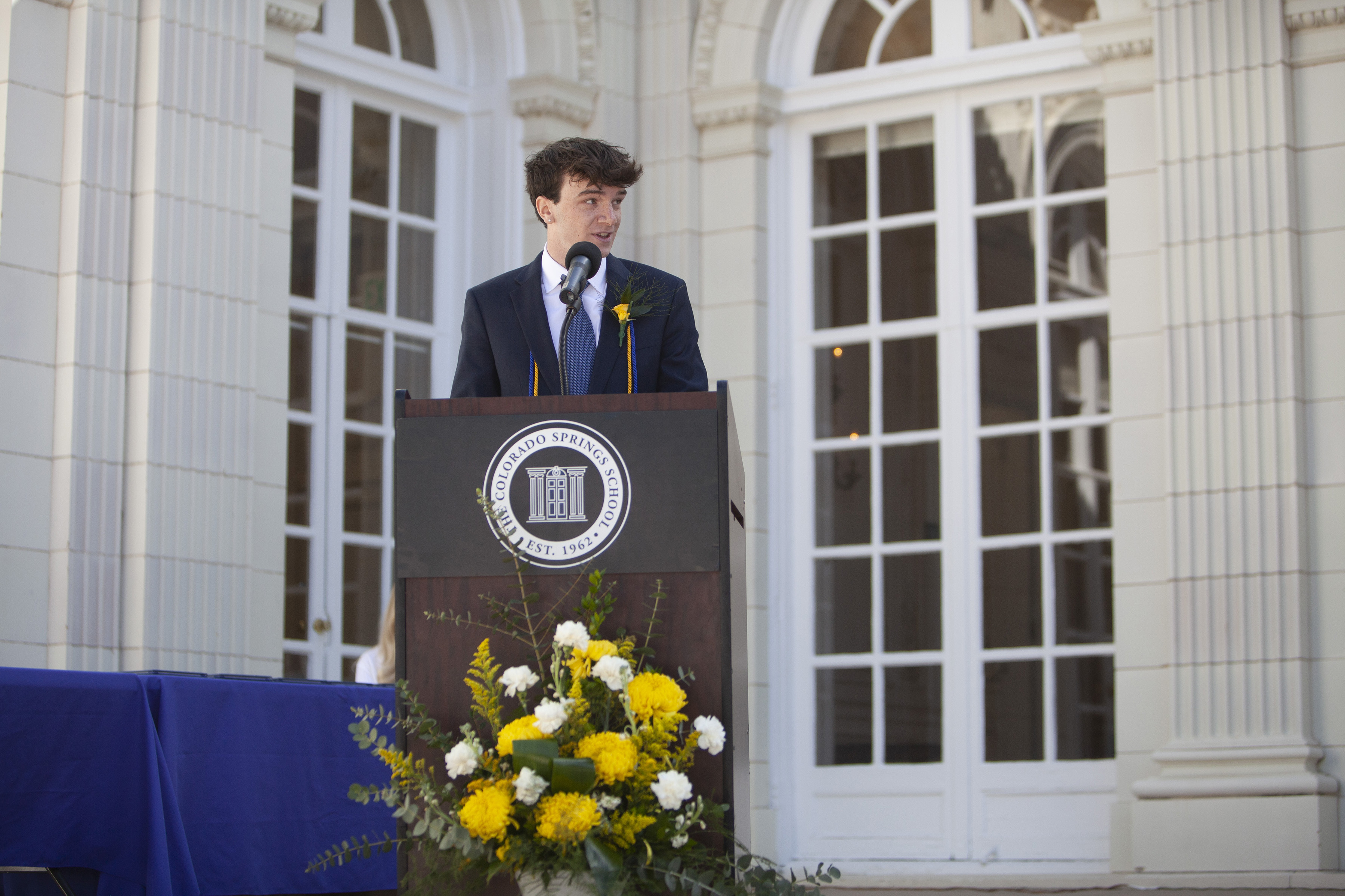 All who supported us through our endeavor of graduating from The Colorado Springs School chose to view us through a lens of optimism, admiration, and belief that propelled us to new academic, athletic, and personal heights, and without them, we would not be gathered here today. As we embark on our new journeys and adventures, we must remember all those who helped us stand strong in the winds of life and remember that they chose to see more than what may have appeared on the surface. I encourage my fellow classmates and all who may benefit from this advice to follow the example of many who surround us and to choose the lens with which you view life’s events, ourselves, and others with wisdom, courage, optimism, gratitude, and a little bit of curiosity. If you are not happy with the picture painted in front of you, it is in your power to create a new masterpiece and define your own meaning. I wish you all the best in your upcoming endeavors. Thank you for allowing me the opportunity to represent this senior class in saying thank you for preparing us to approach all that life throws at us, confident that the world is ours to create. Congratulations, Class of 2024!