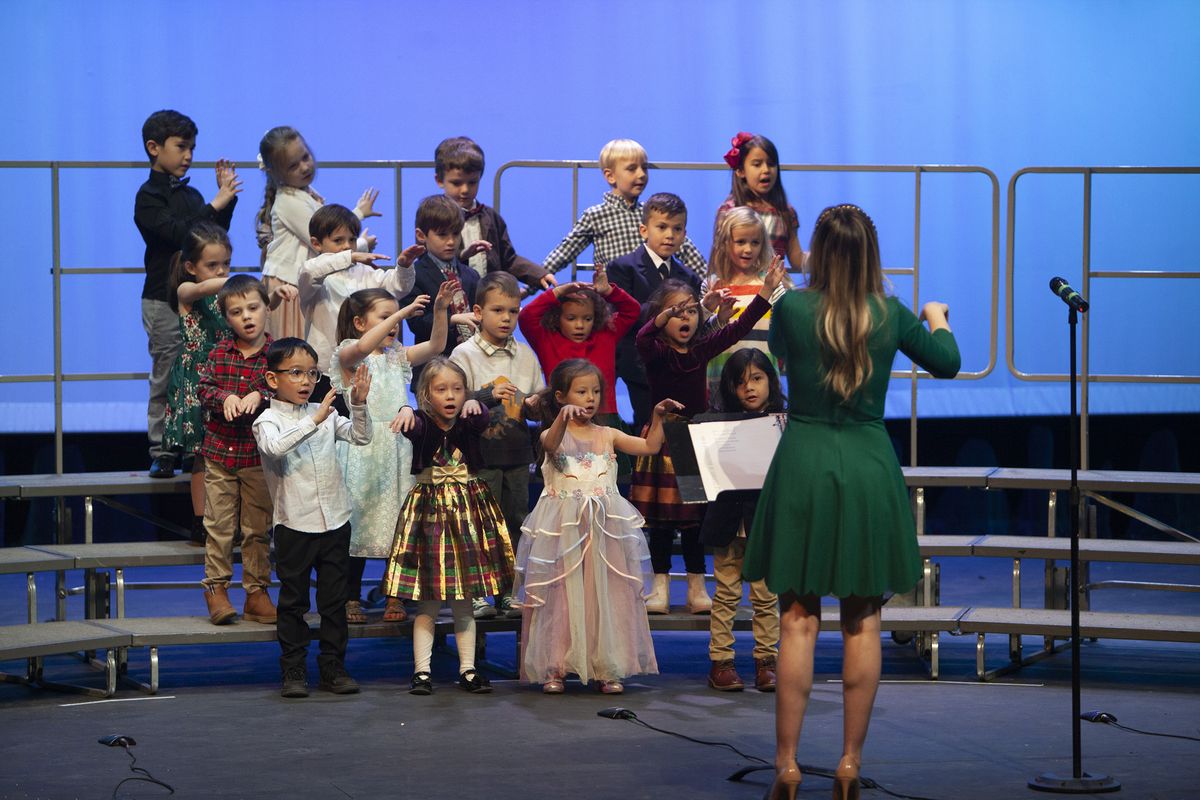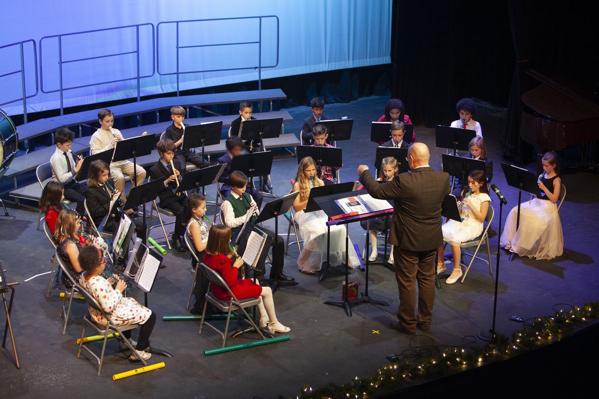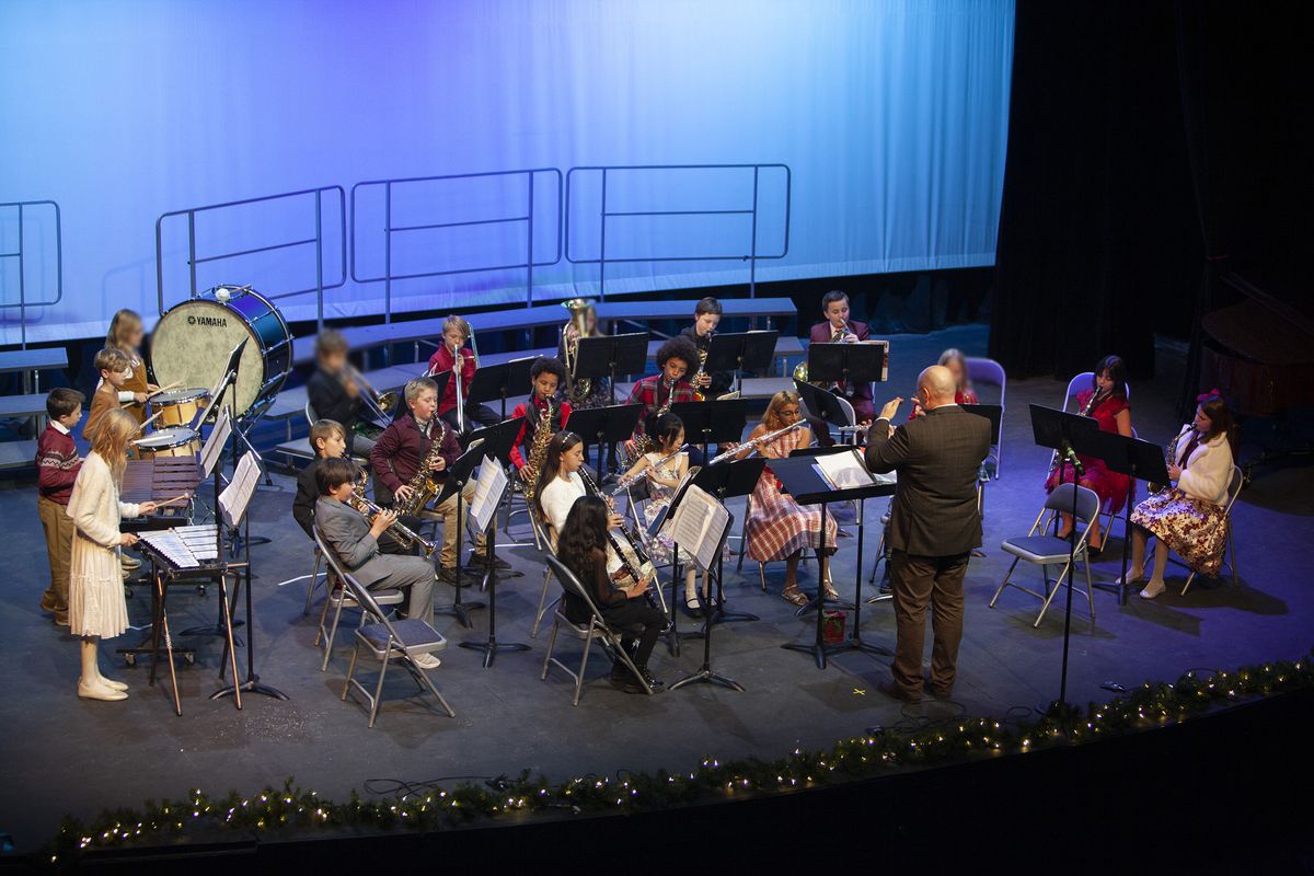 Students in Kindergarten through Grade 5 took the stage for the annual Holiday Tea, a Choir and Band Concert, on December 8, 2024, in the Louisa Performing Arts Center. Kindergarten through Grade 2 performed first with songs including “Mi Cuerpo," "Winter Moon," and "Hot Chocolate." All students came together to close out the first part of the show with “Let There Be Peace on Earth," an all-school song that is performed by Kindergarten students through the Upper School Vocal Ensemble.