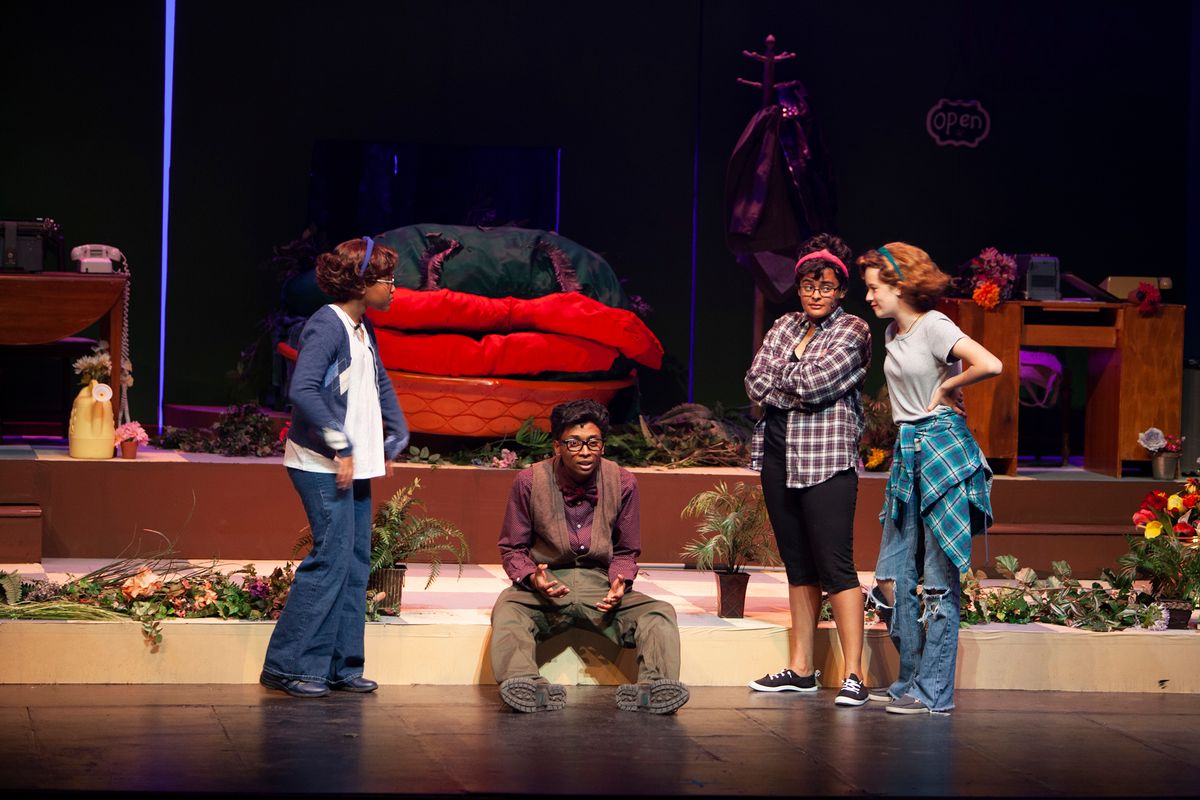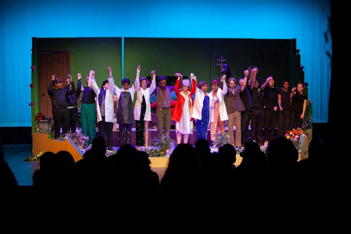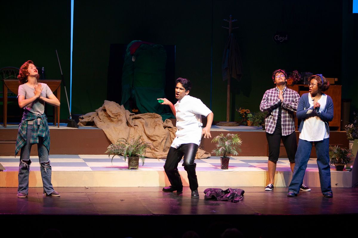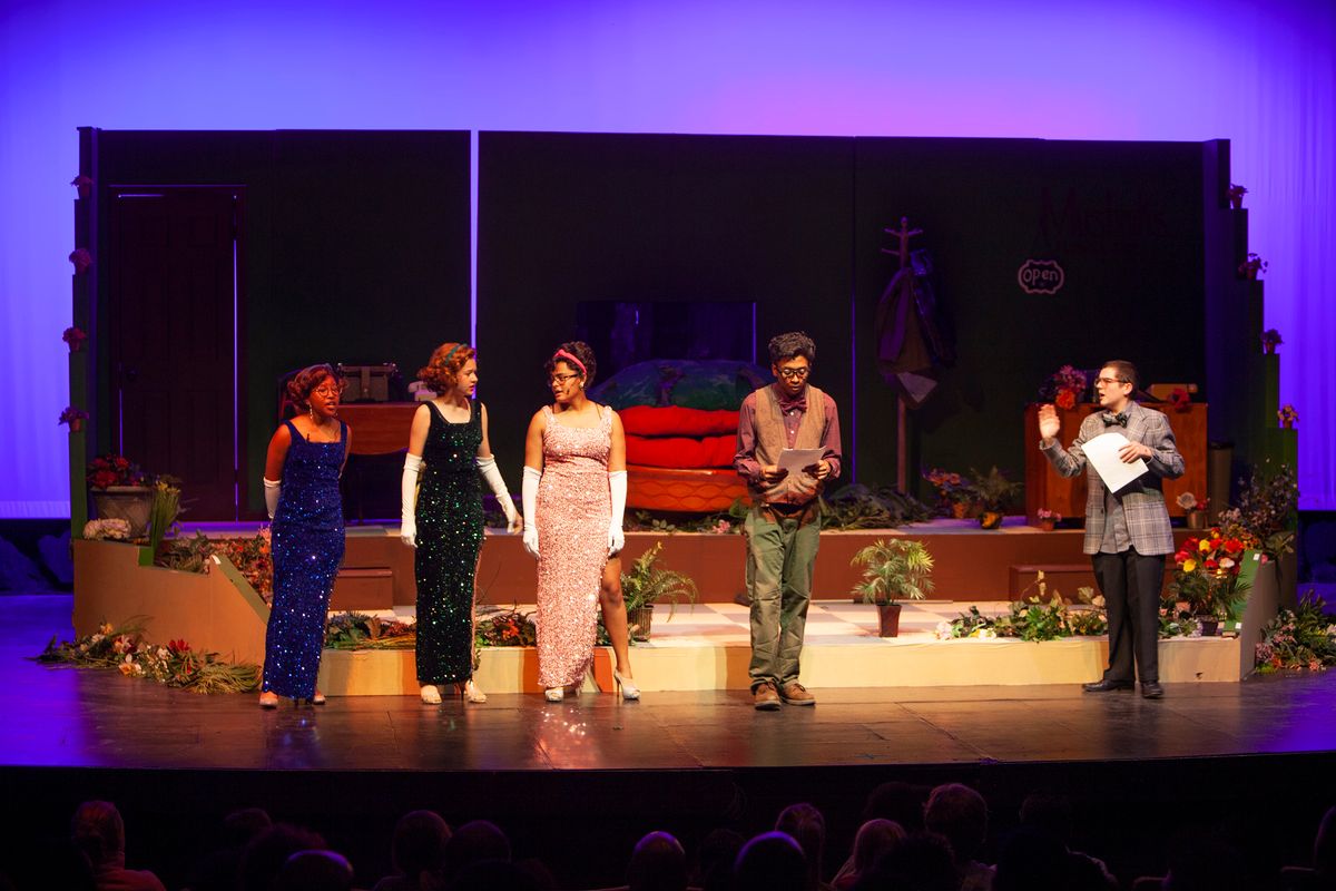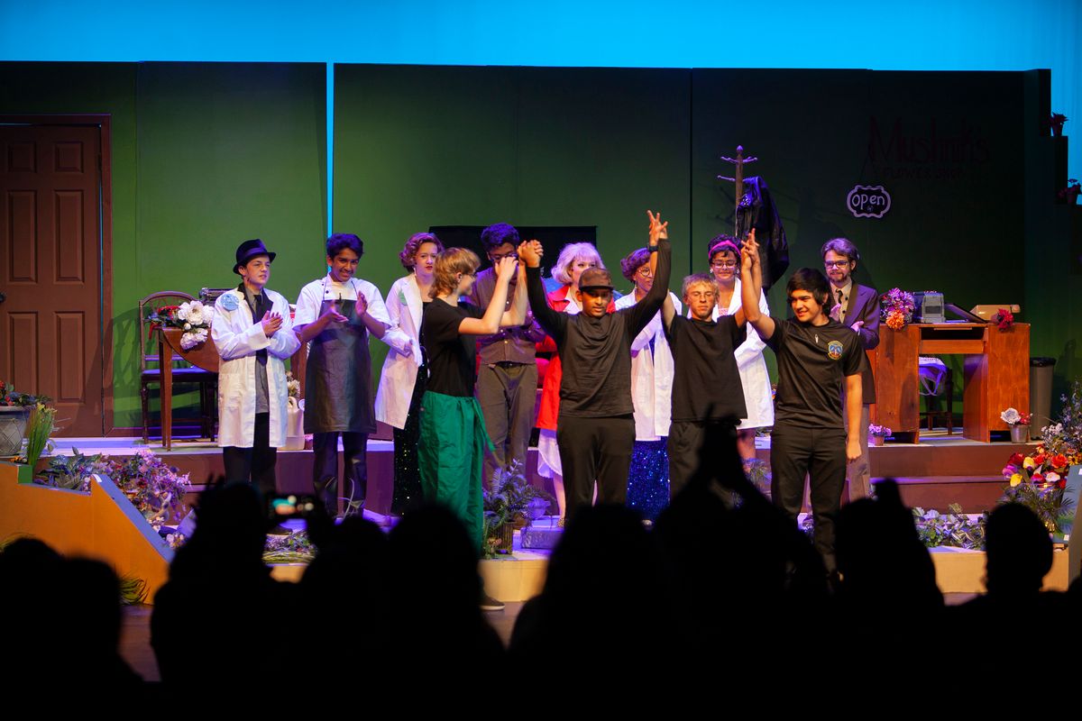 Congratulations to the cast and crew for the Upper School Spring production of Little Shop of Horrors! The musical made its return to The Colorado Springs School stage for three performances on April 28-30, 2023, for the first time since 2002 (and 1996). Little Shop of Horrors – with book and lyrics by Howard Ashman and music by Alan Menken – is a gleefully gruesome musical about Seymour, a poor florist's assistant, who allows his craving for fame and fortune to seduce him into playing nursemaid to a man-eating plant from another galaxy. Read a feature on the production here.