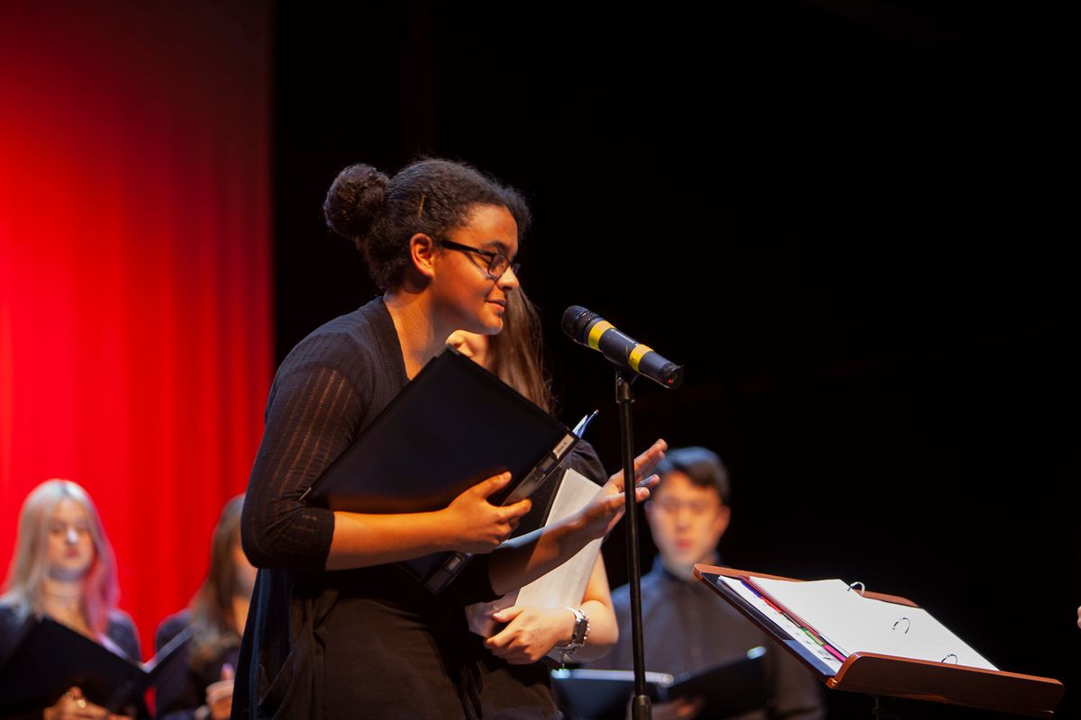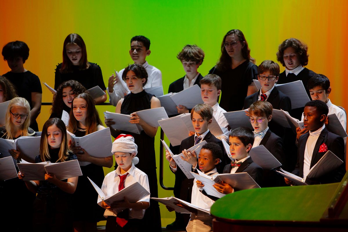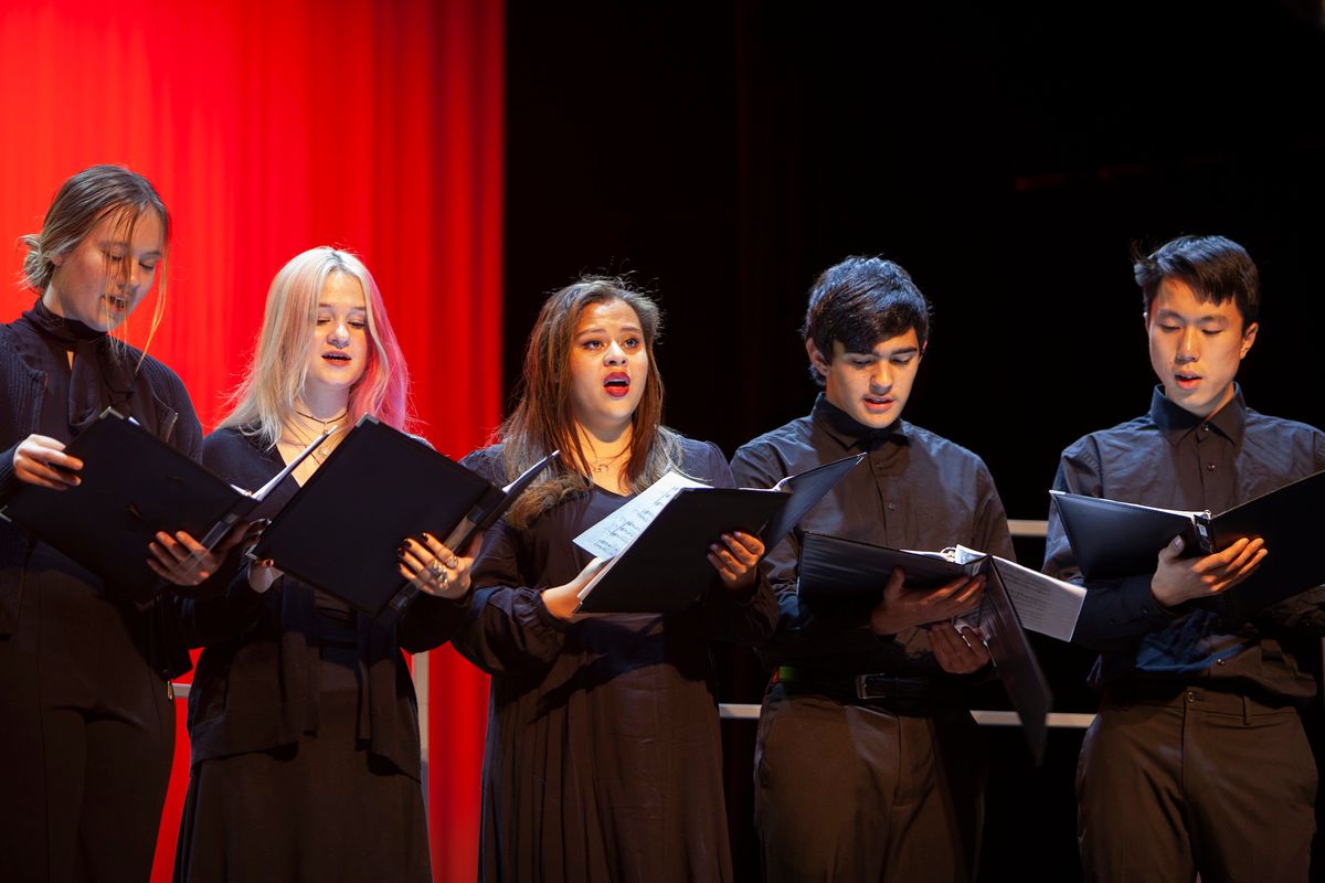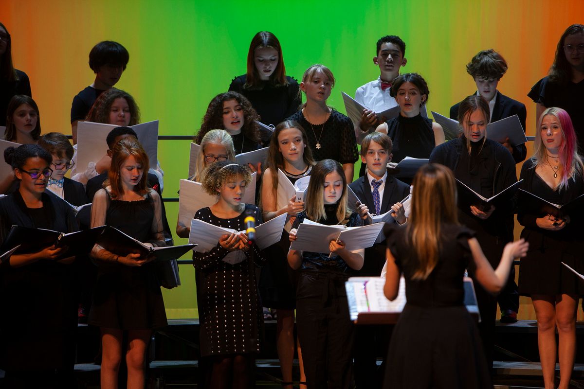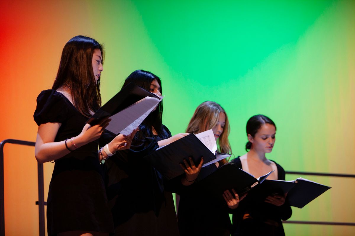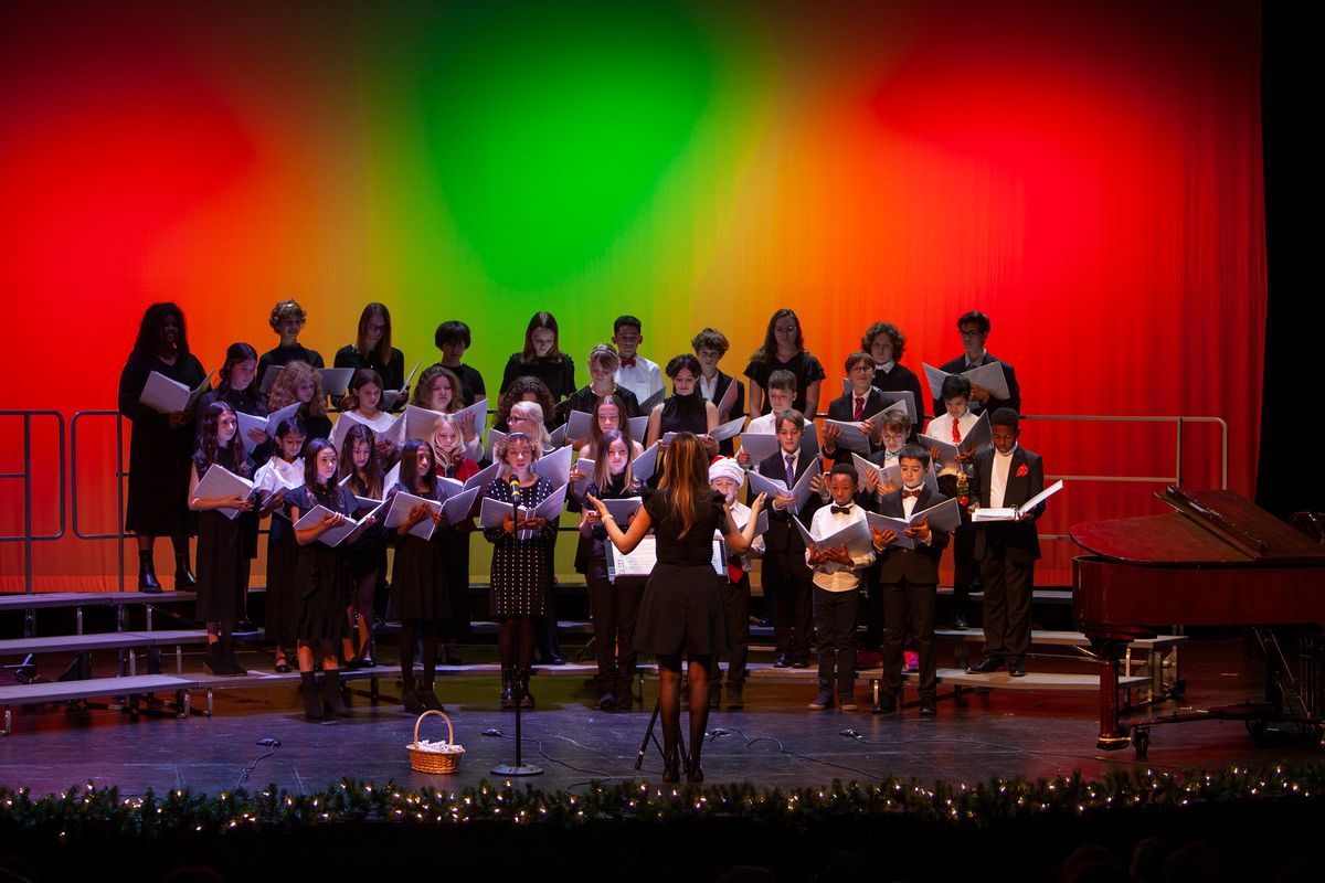 The Middle School Choir and Upper School Chamber Choir performed a concert on December 8, 2022, in the Louisa Performing Arts Center that featured five original songs by students.
