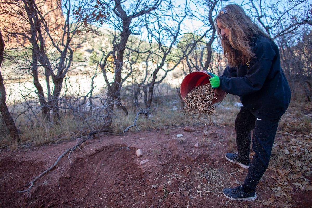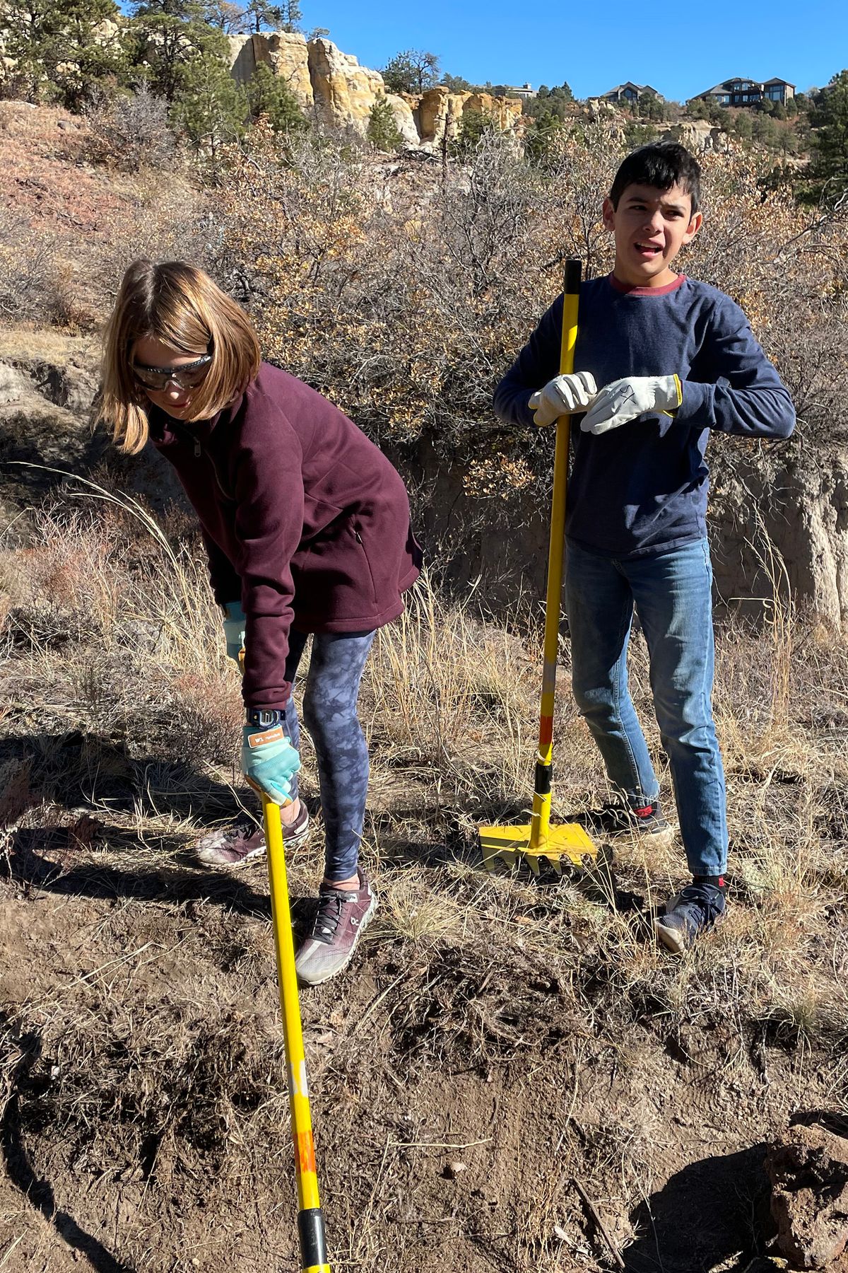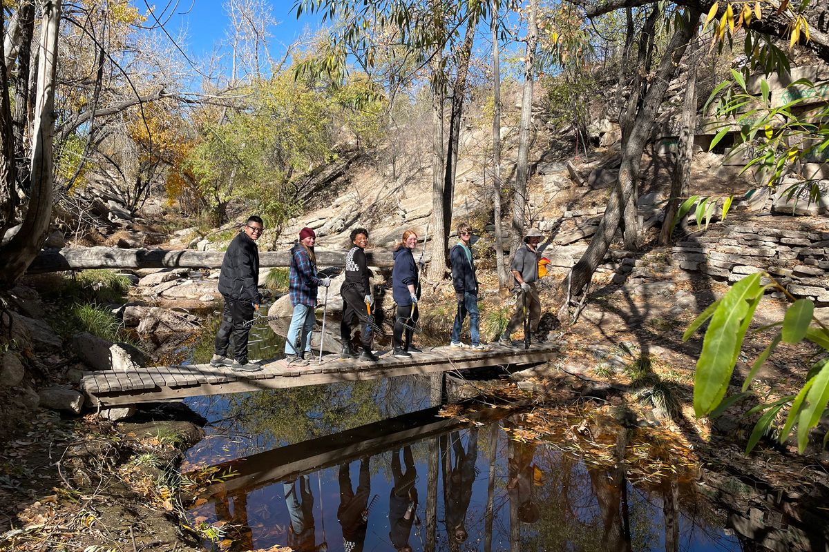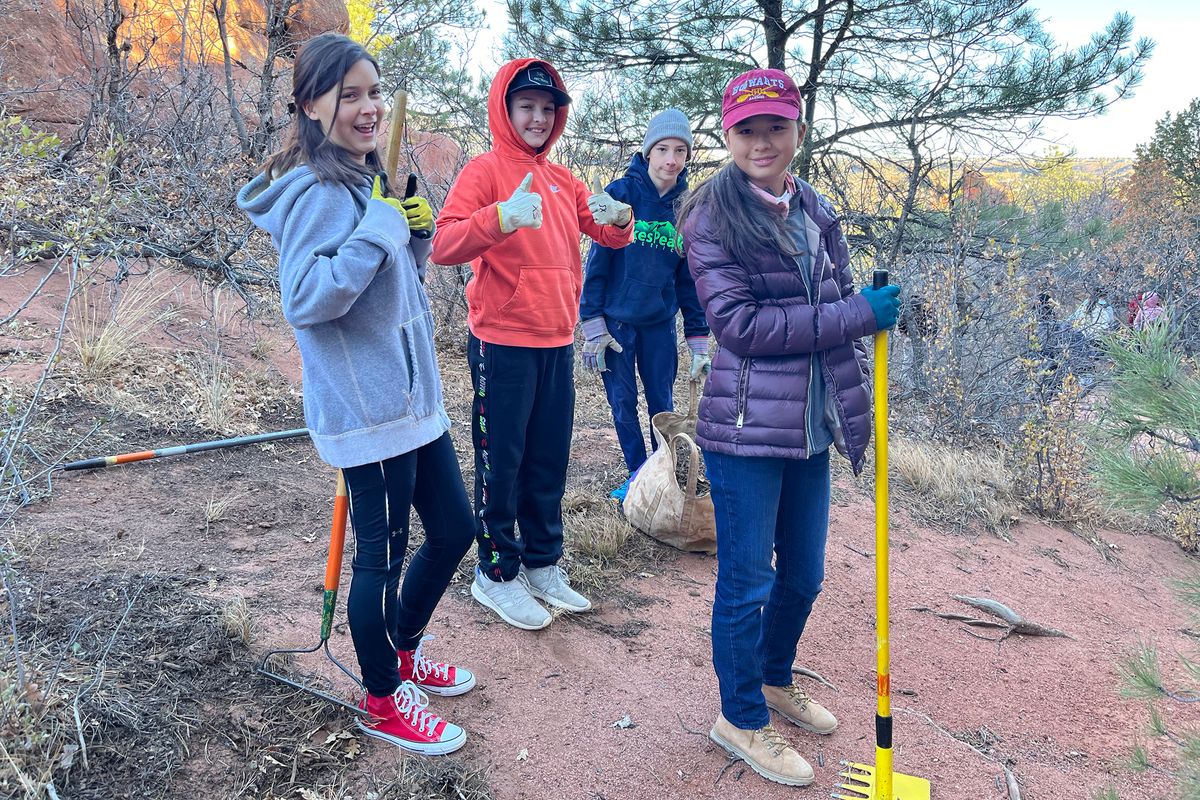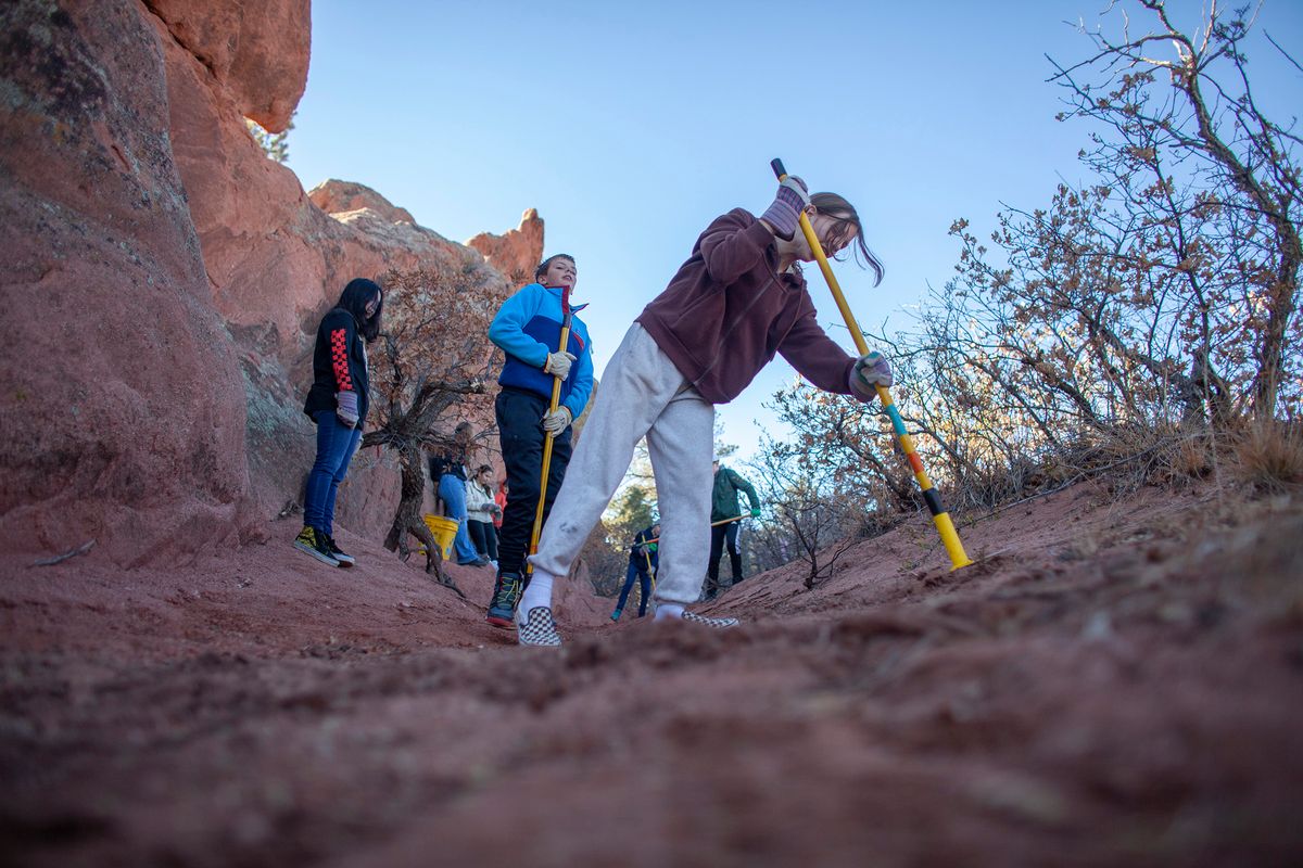 Sixth and seventh graders teamed up with Rocky Mountain Field Institute for trail maintenance at Red Rock Canyon and a location near the University of Colorado Colorado Springs.