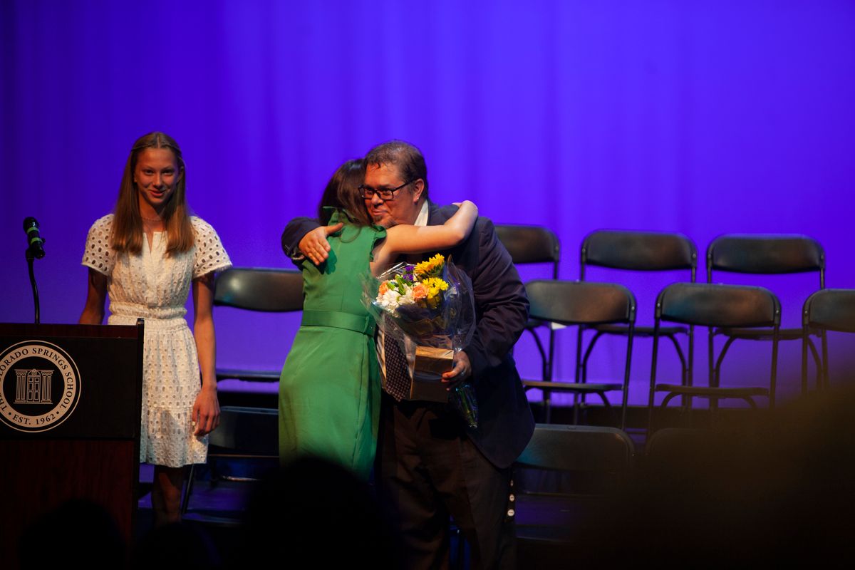 The ceremony concluded with 8th-grade students Ellie S. and Annabelle C. reading a touching tribute to outgoing Middle School Director Ron Hamilton. They commented on how he set the tone every day with a deep and hearty "Good morning!", that he never missed the quiet signs of an upset Middle Schooler, that he was as committed as their own parents to supporting them at athletic events, that he was more than a Middle School director.