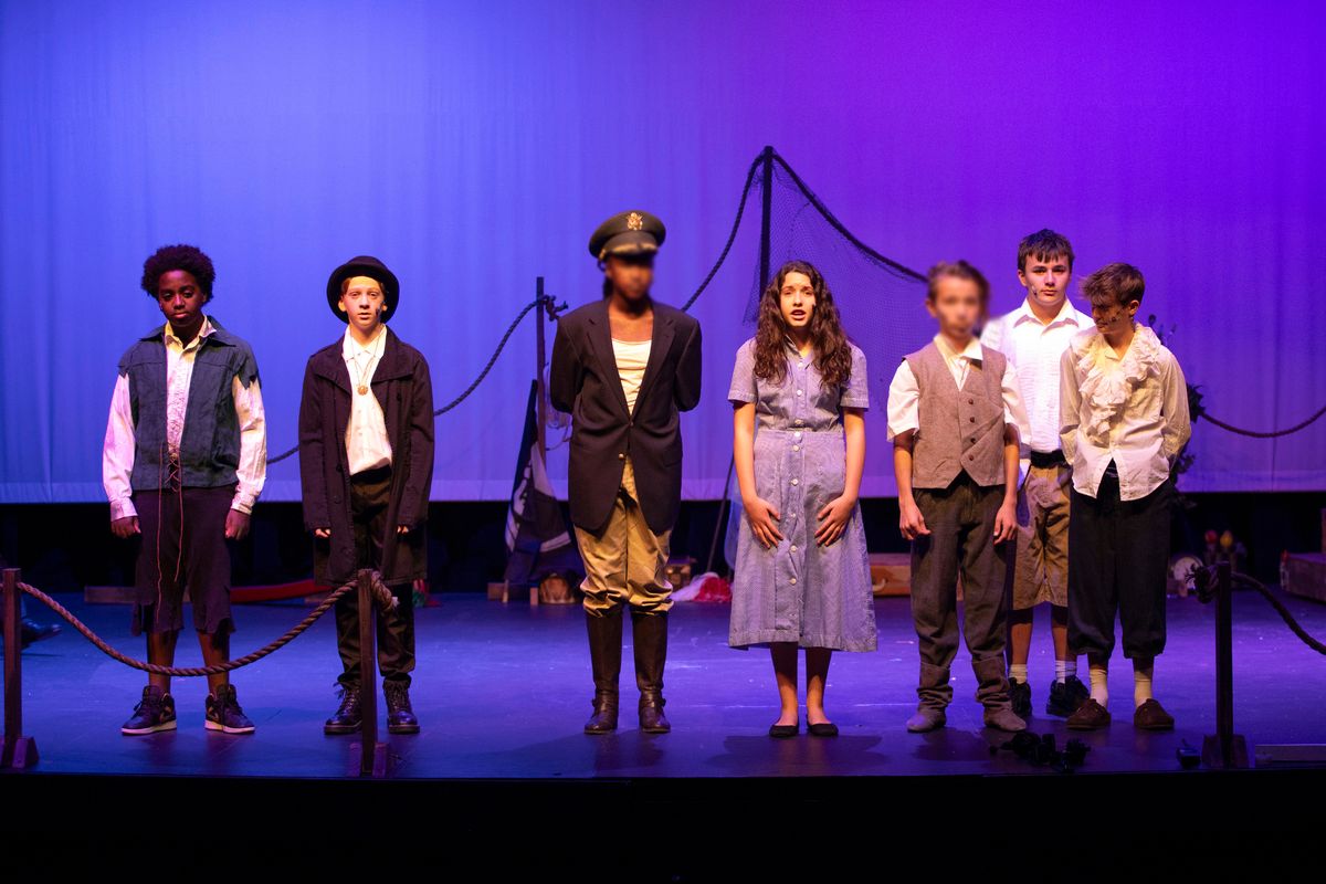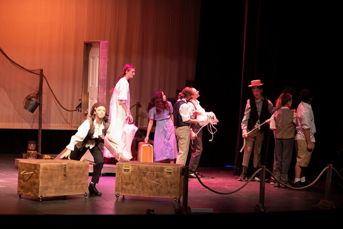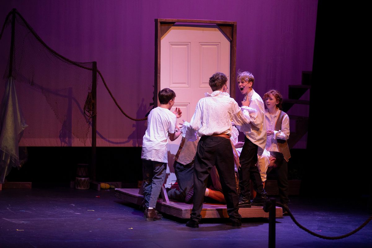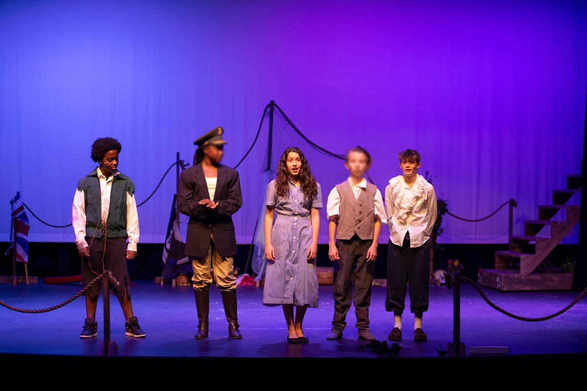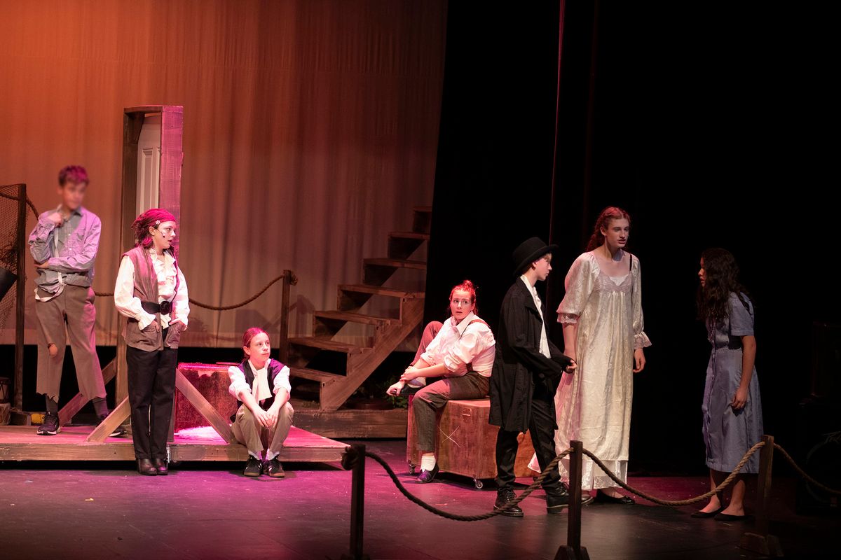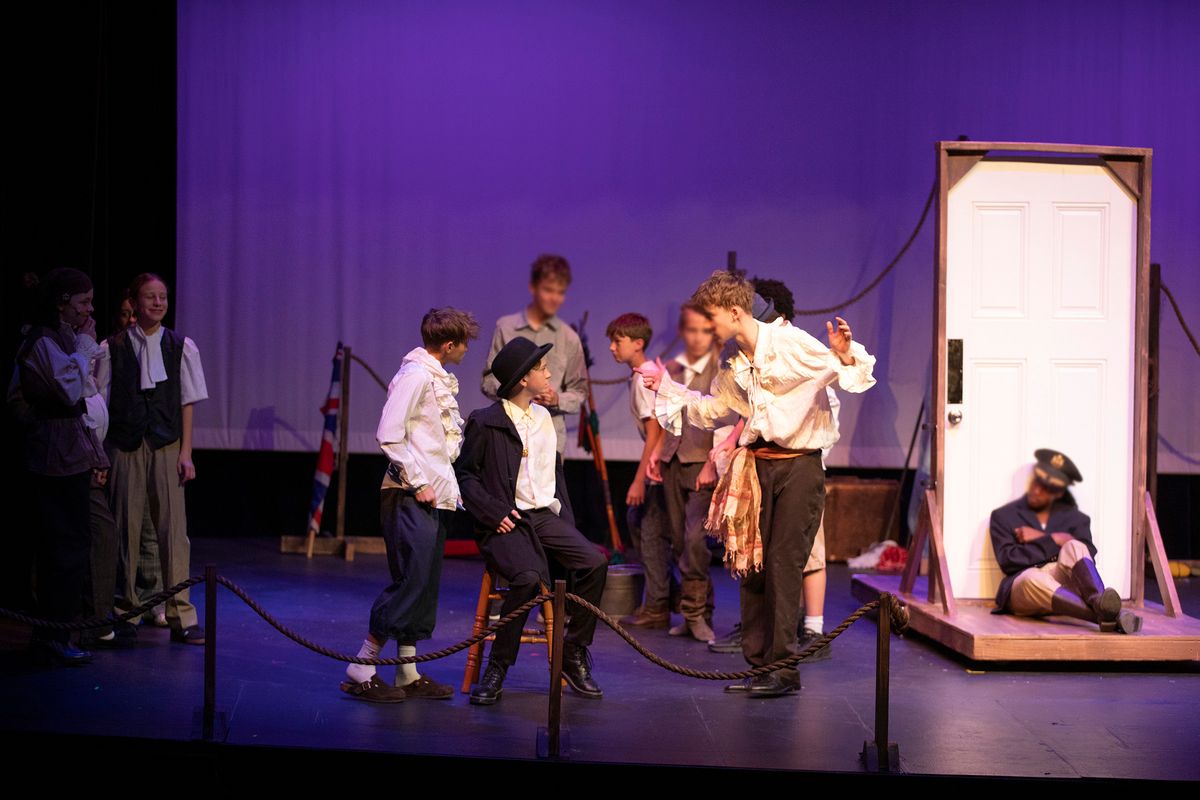 Peter and the Starcatcher, adapted by Rick Elice from the novel by Dave Barry and Ridley Pearson, is a Tony Award–winning play that reimagines the origin story of Peter Pan. The Middle School production followed a nameless orphan boy aboard the ship The Neverland, where he and his fellow orphans encountered pirates—including the comical Black Stache, who will one day become Captain Hook—and a young apprentice Starcatcher named Molly, who guarded a trunk of magical “starstuff.”