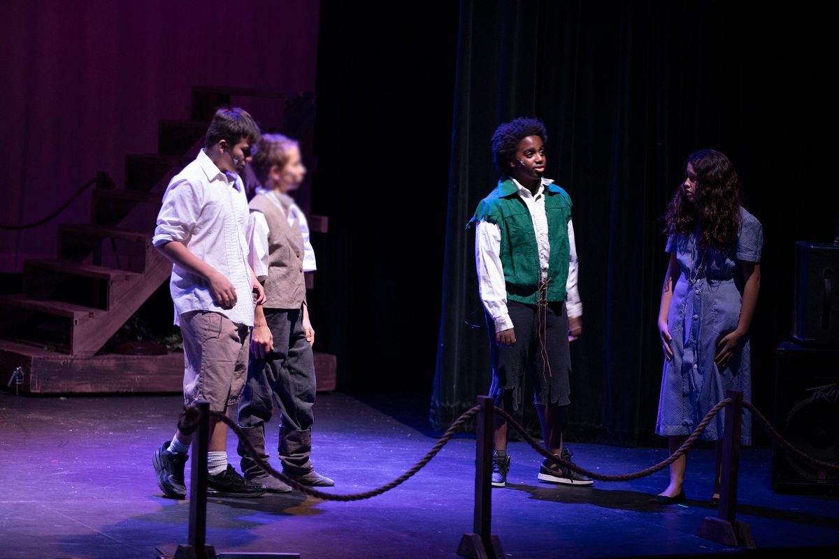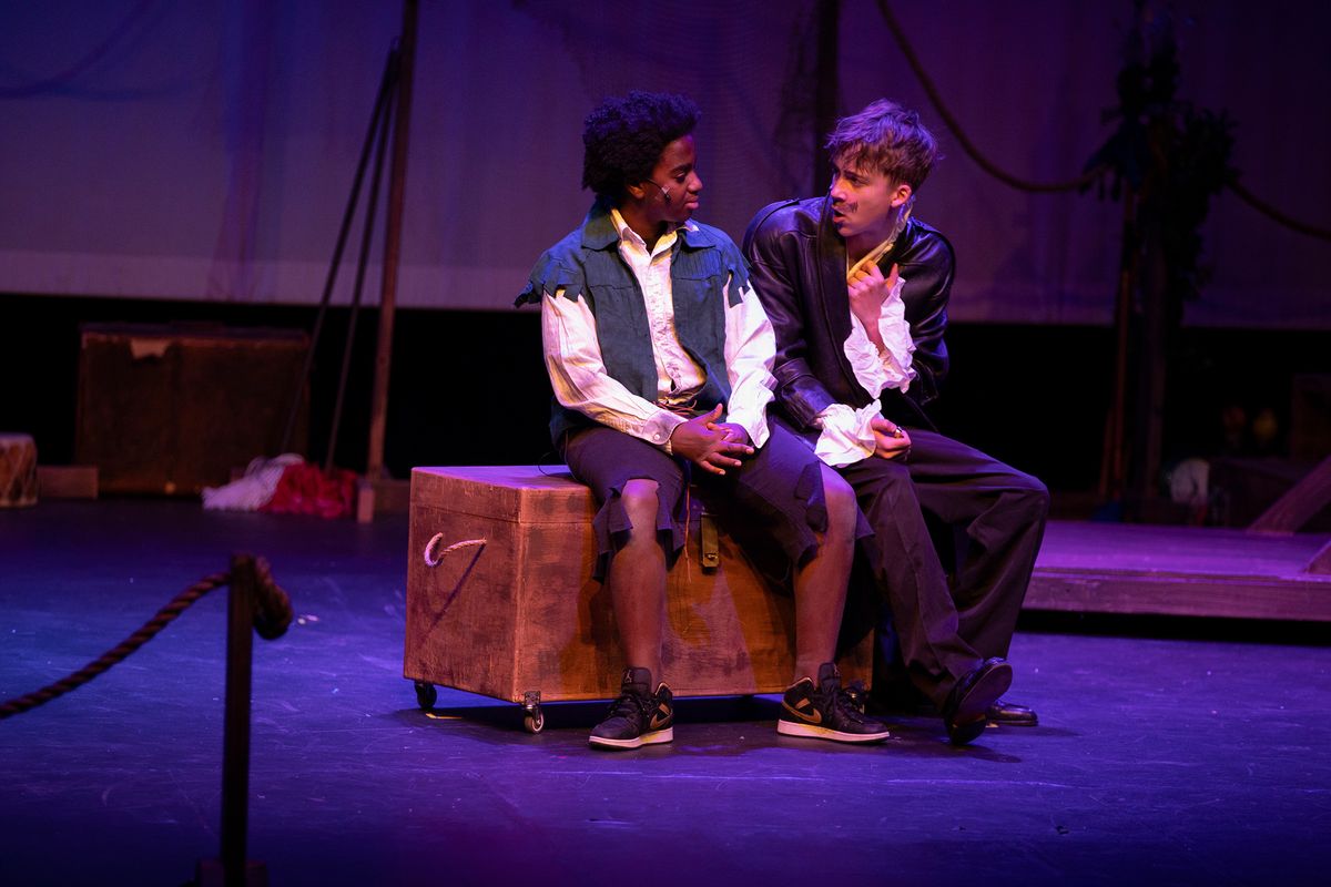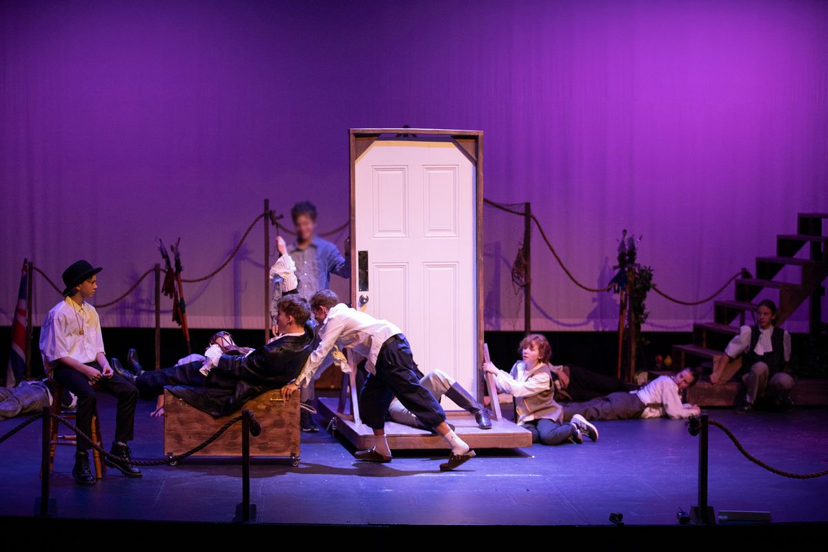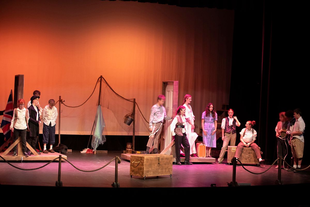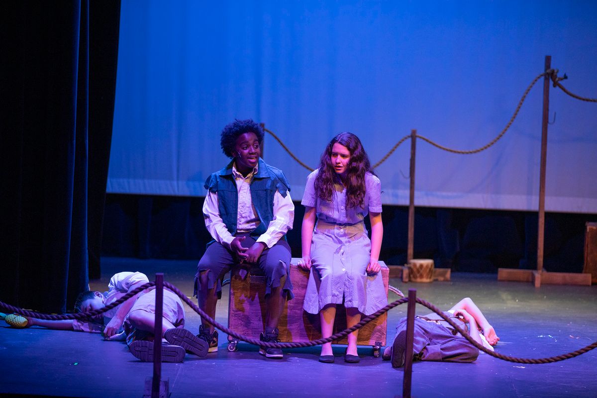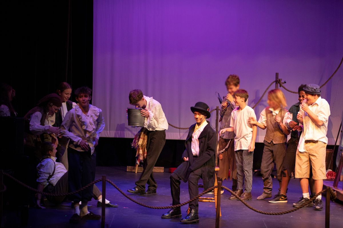 Peter and the Starcatcher, adapted by Rick Elice from the novel by Dave Barry and Ridley Pearson, is a Tony Award–winning play that reimagines the origin story of Peter Pan. The Middle School production followed a nameless orphan boy aboard the ship The Neverland, where he and his fellow orphans encountered pirates—including the comical Black Stache, who will one day become Captain Hook—and a young apprentice Starcatcher named Molly, who guarded a trunk of magical “starstuff.”
