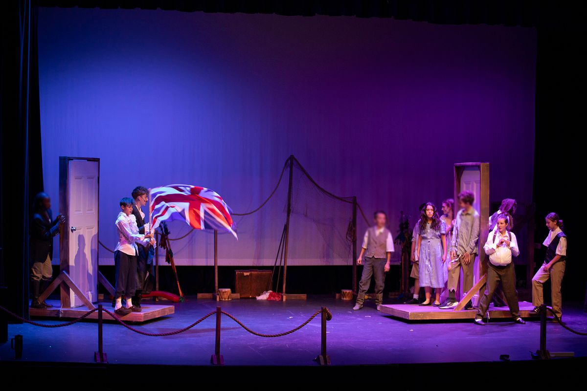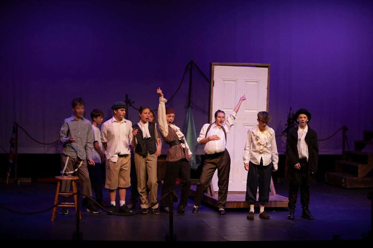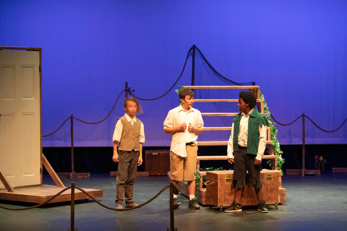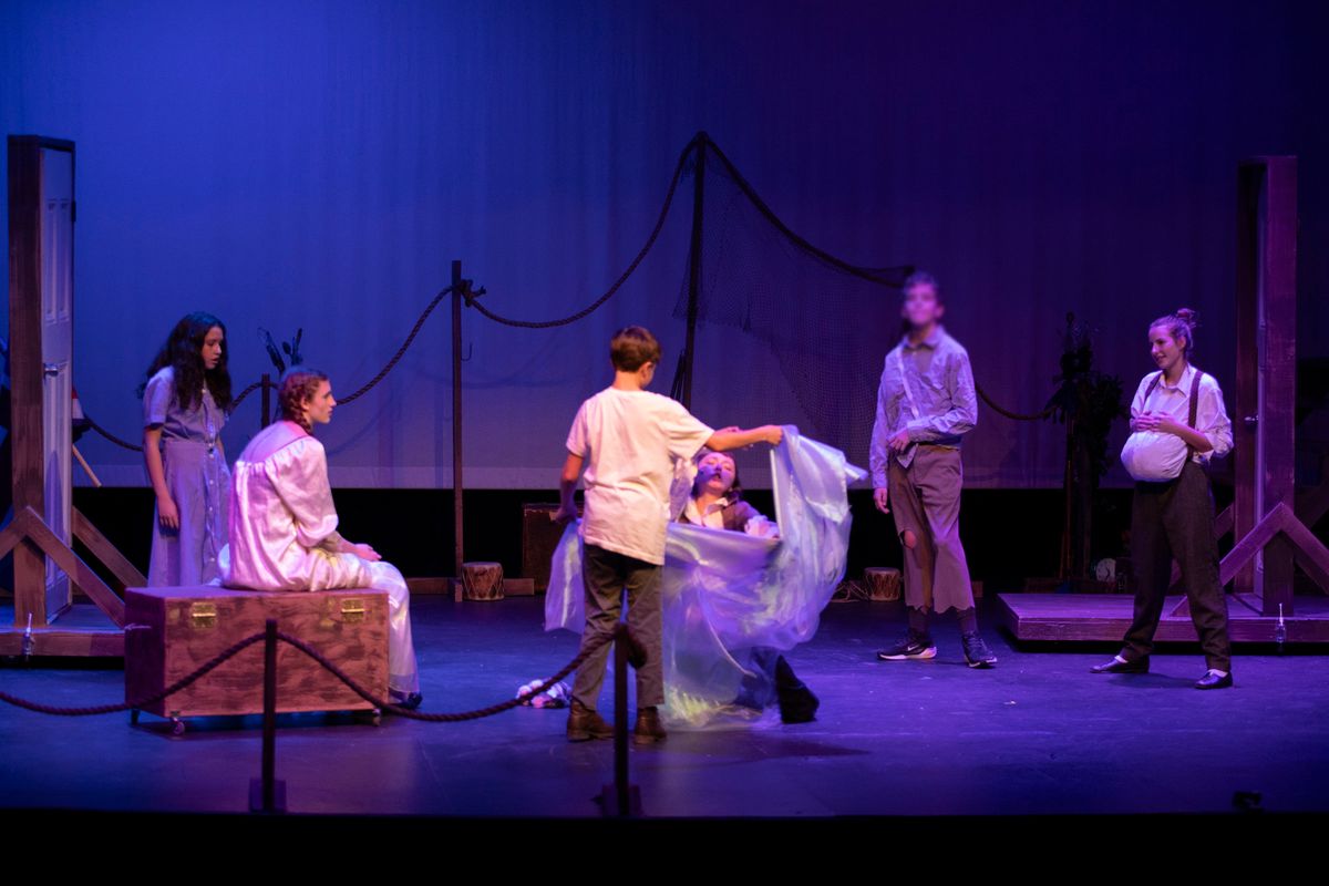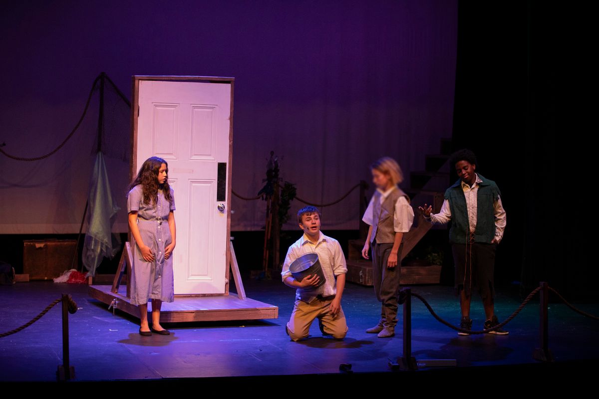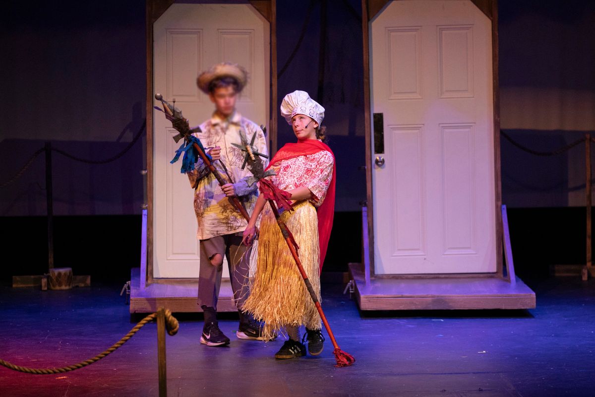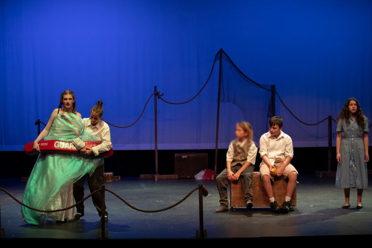 Peter and the Starcatcher, adapted by Rick Elice from the novel by Dave Barry and Ridley Pearson, is a Tony Award–winning play that reimagines the origin story of Peter Pan. The Middle School production followed a nameless orphan boy aboard the ship The Neverland, where he and his fellow orphans encountered pirates—including the comical Black Stache, who will one day become Captain Hook—and a young apprentice Starcatcher named Molly, who guarded a trunk of magical “starstuff.”