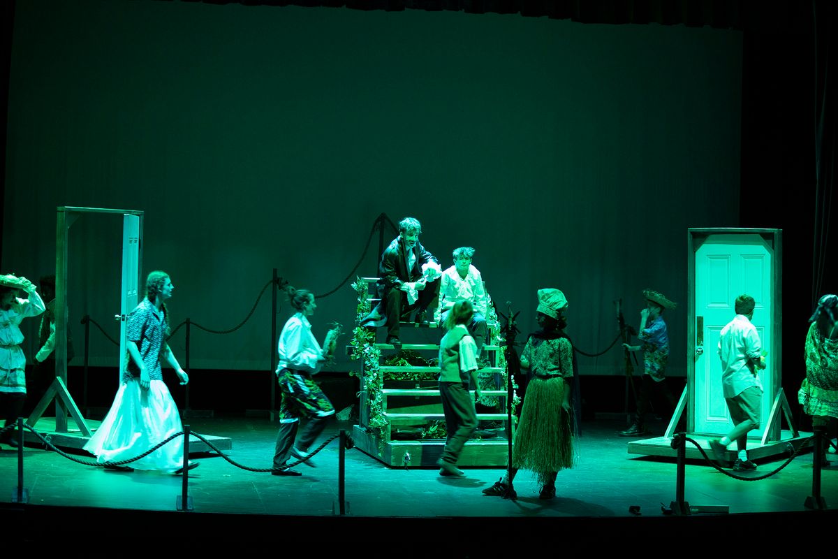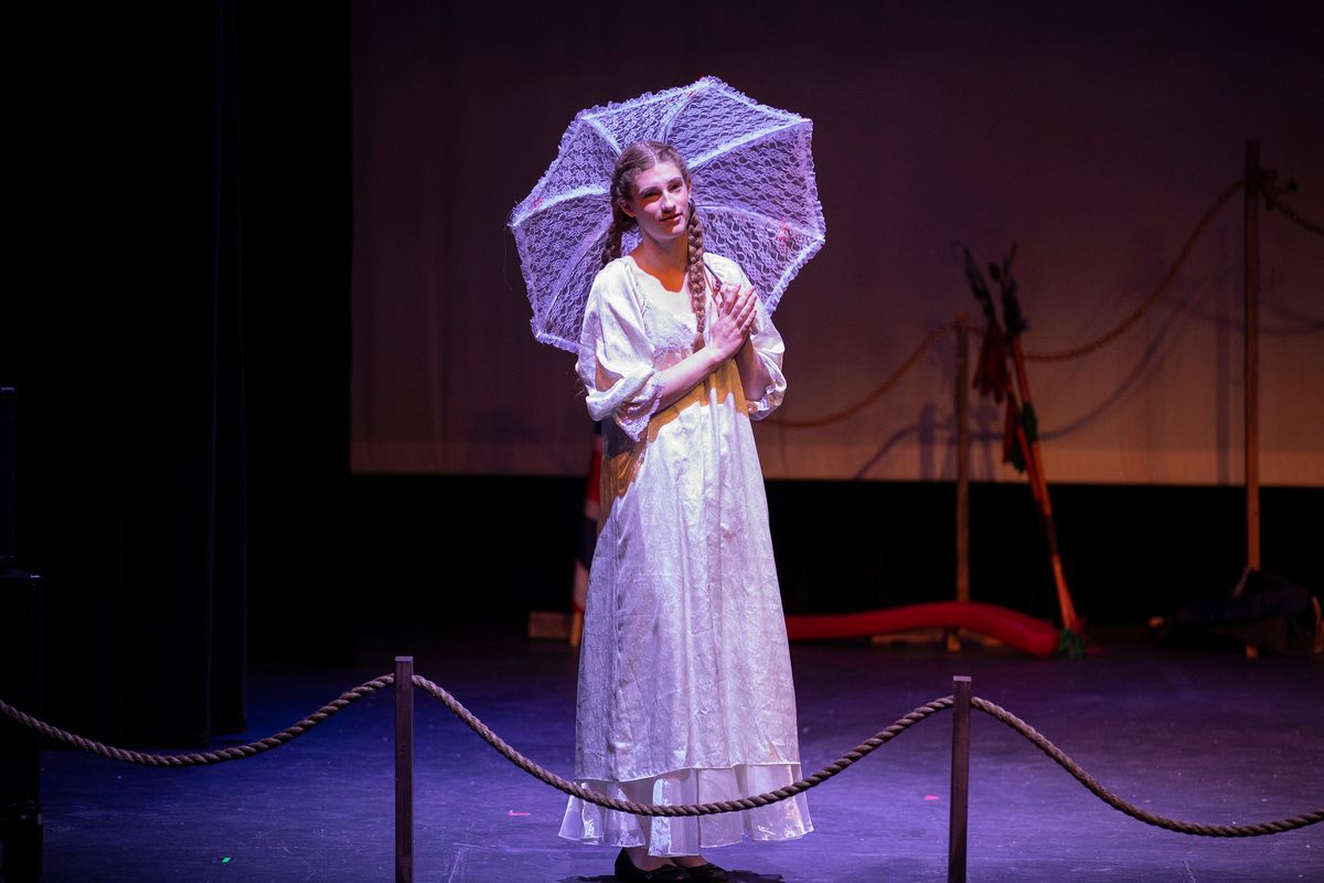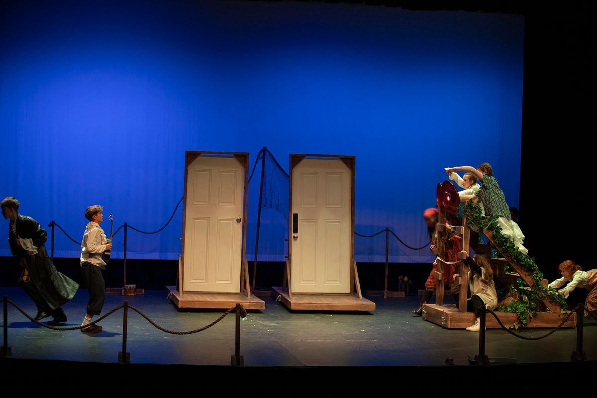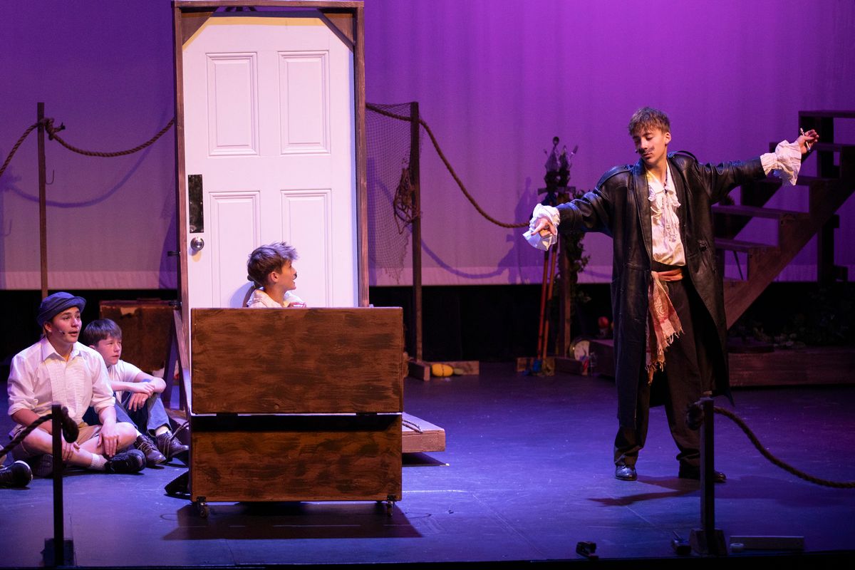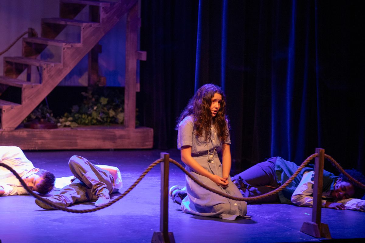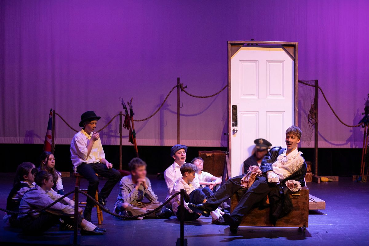 Peter and the Starcatcher, adapted by Rick Elice from the novel by Dave Barry and Ridley Pearson, is a Tony Award–winning play that reimagines the origin story of Peter Pan. The Middle School production followed a nameless orphan boy aboard the ship The Neverland, where he and his fellow orphans encountered pirates—including the comical Black Stache, who will one day become Captain Hook—and a young apprentice Starcatcher named Molly, who guarded a trunk of magical “starstuff.”