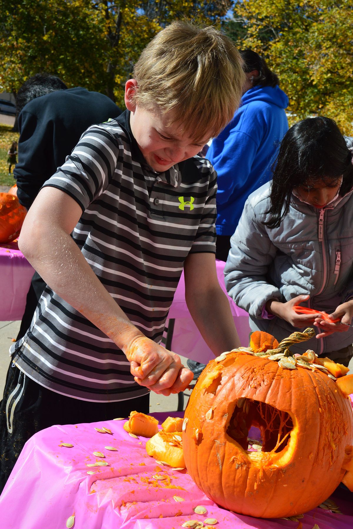 Kodiaks celebrated Halloween today, beginning with a PreKindergarten parade, followed in the afternoon with Middle School students carving pumpkins and holding a costume contest. Lower School students enjoyed classroom parties, and the day wrapped up with all students on the Quad to cheer on the Lower School parade.