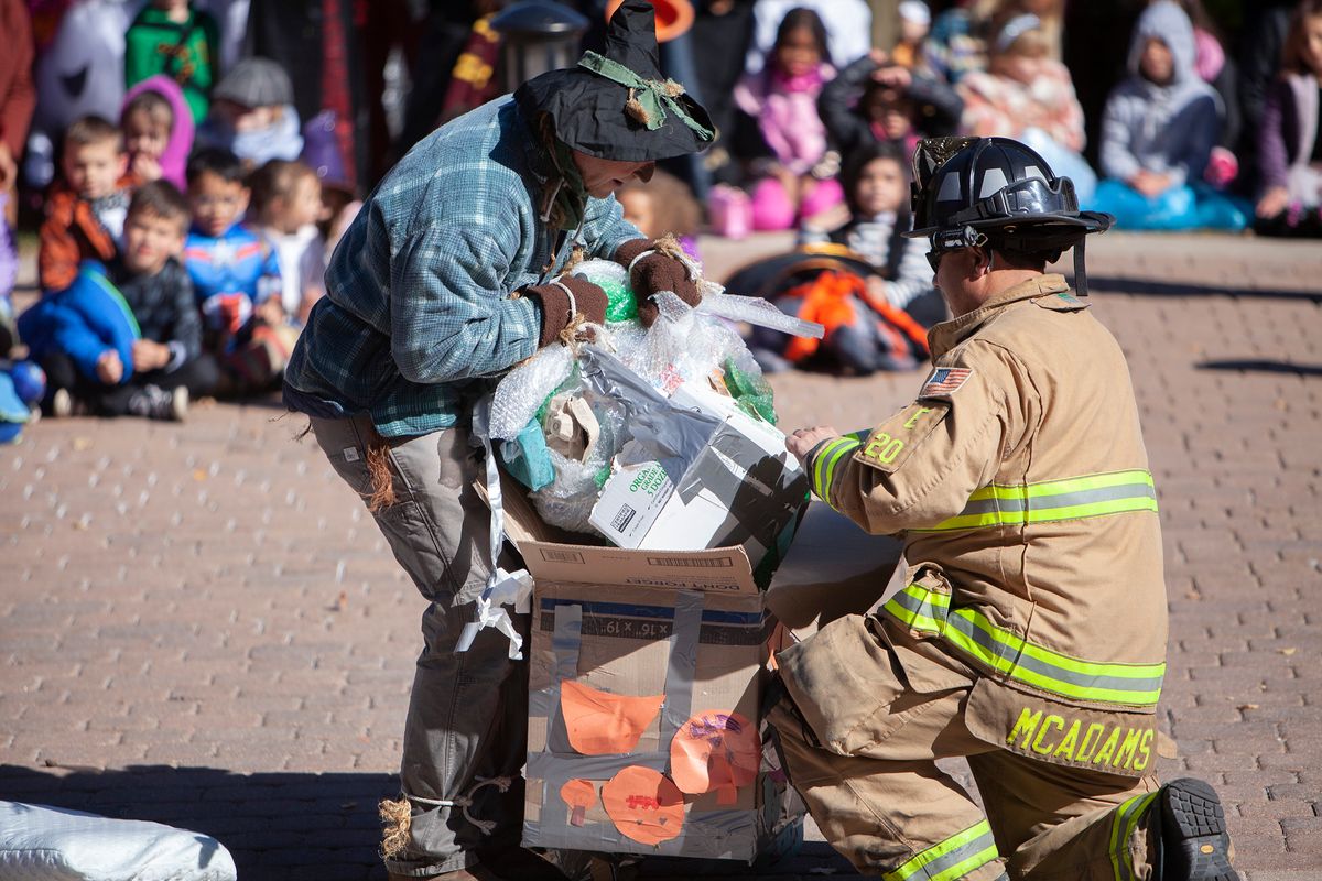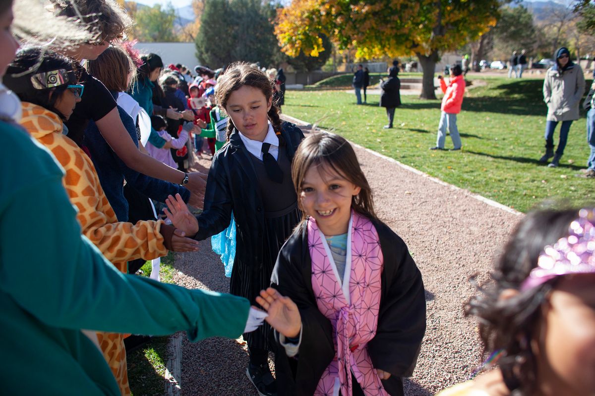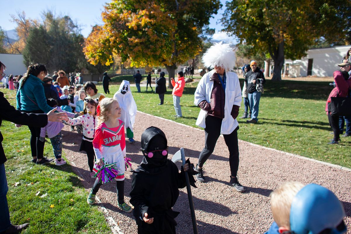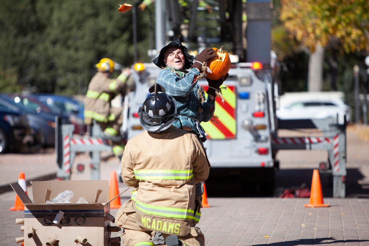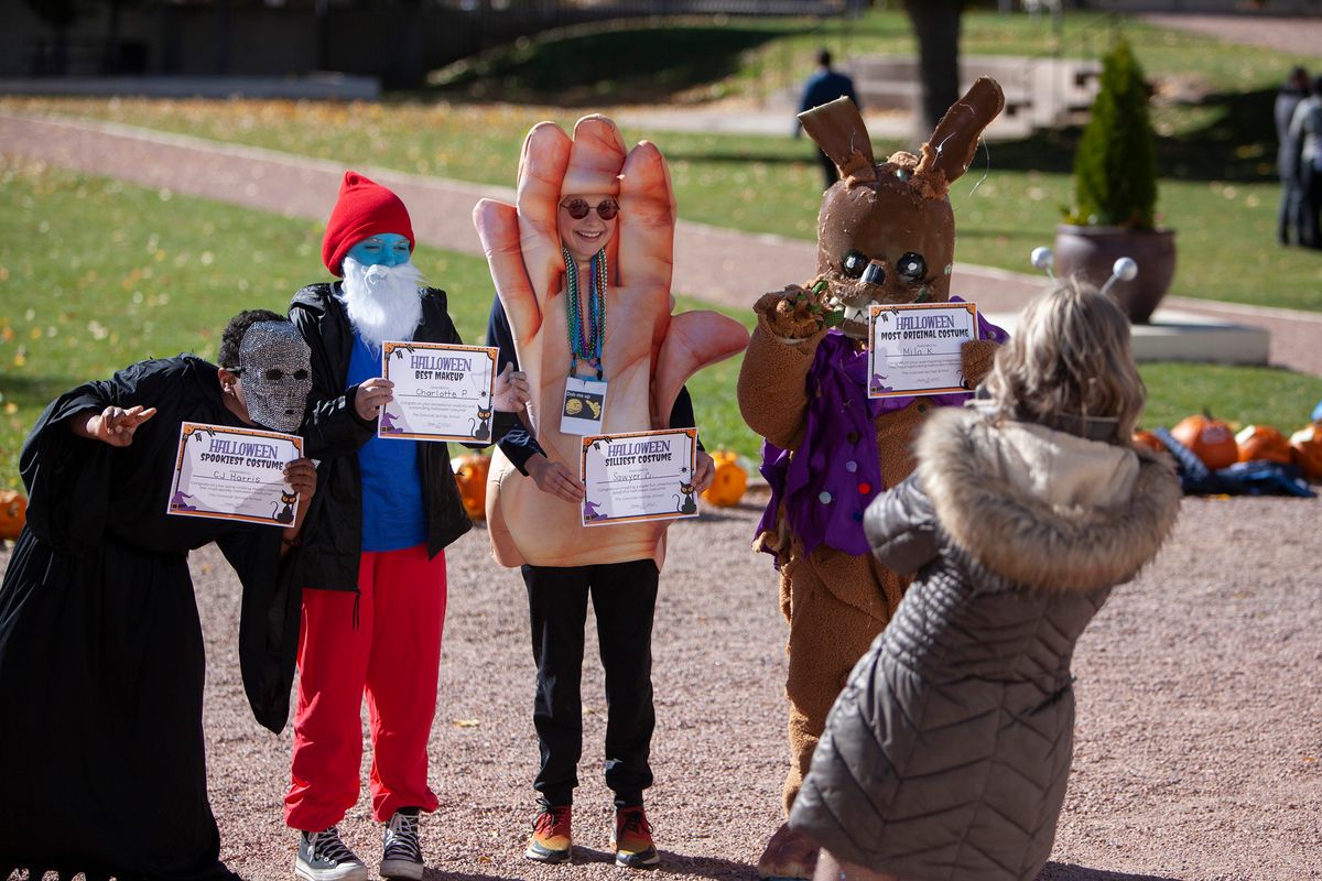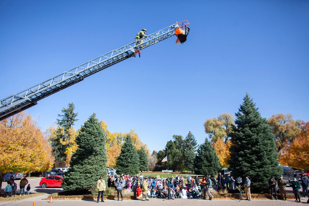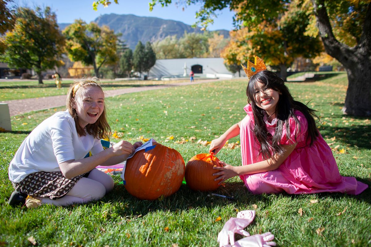 The day also included The Great Pumpkin Drop in which students learned what it takes to engineer a system to keep a pumpkin intact despite sustaining a 75-foot free fall. The Colorado Springs Fire Department partnered with CSS to help students through this hands-on engineering project. Students learned and put into practice the Engineering Design Process – ask, imagine, plan, create, improve. Each class team designed a pod prototype to protect the pumpkin that will be hoisted up a fire truck ladder to 75 feet in the air and then dropped to the ground.