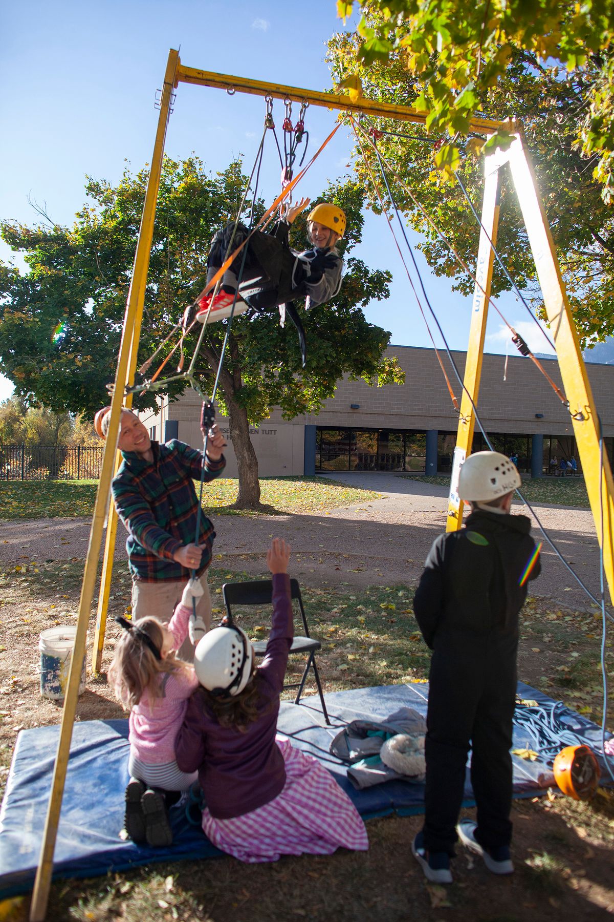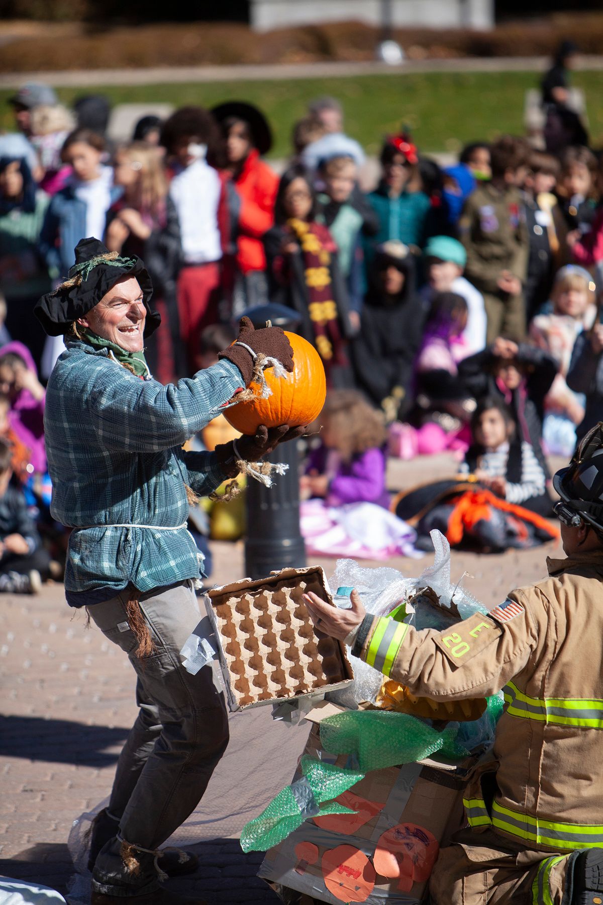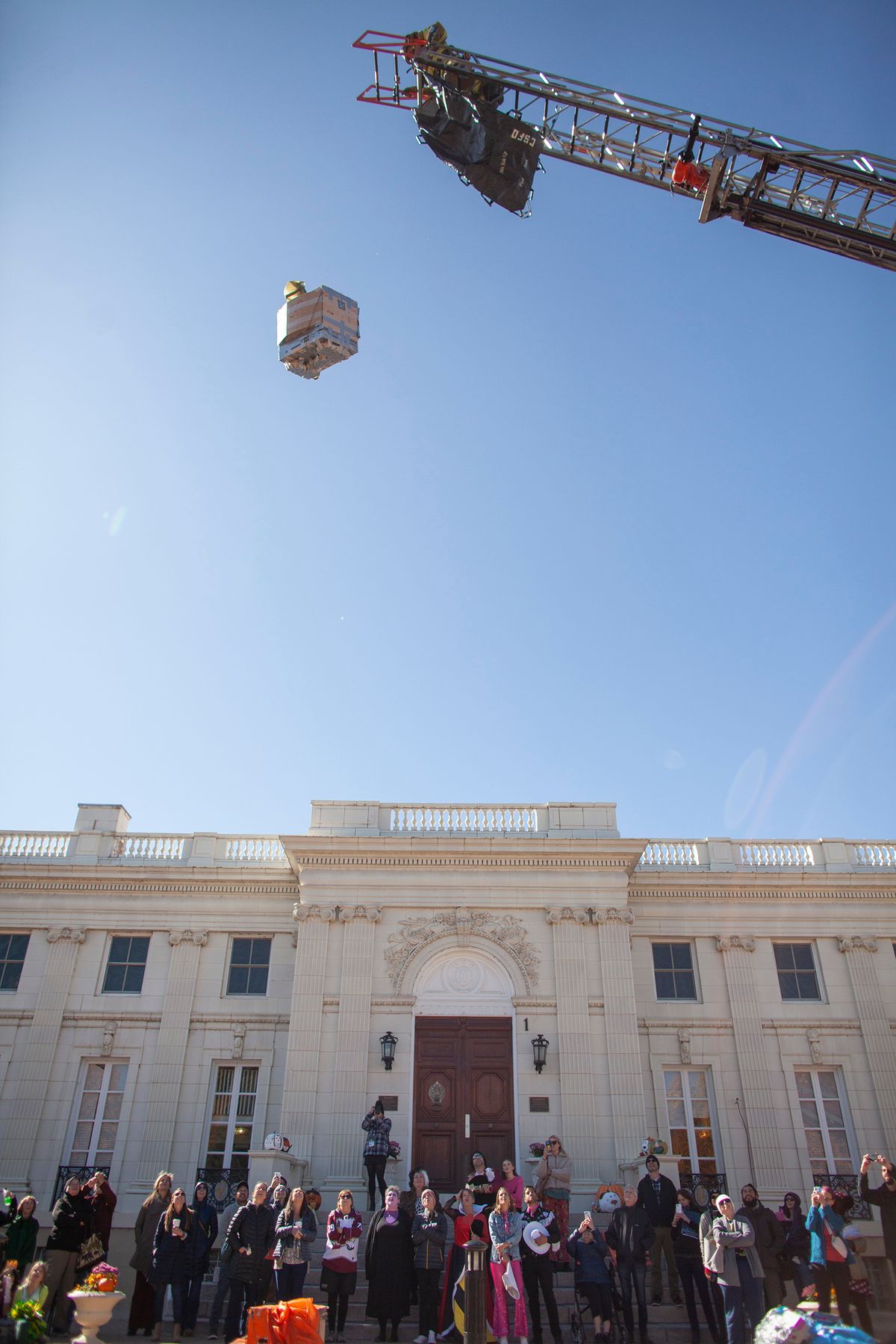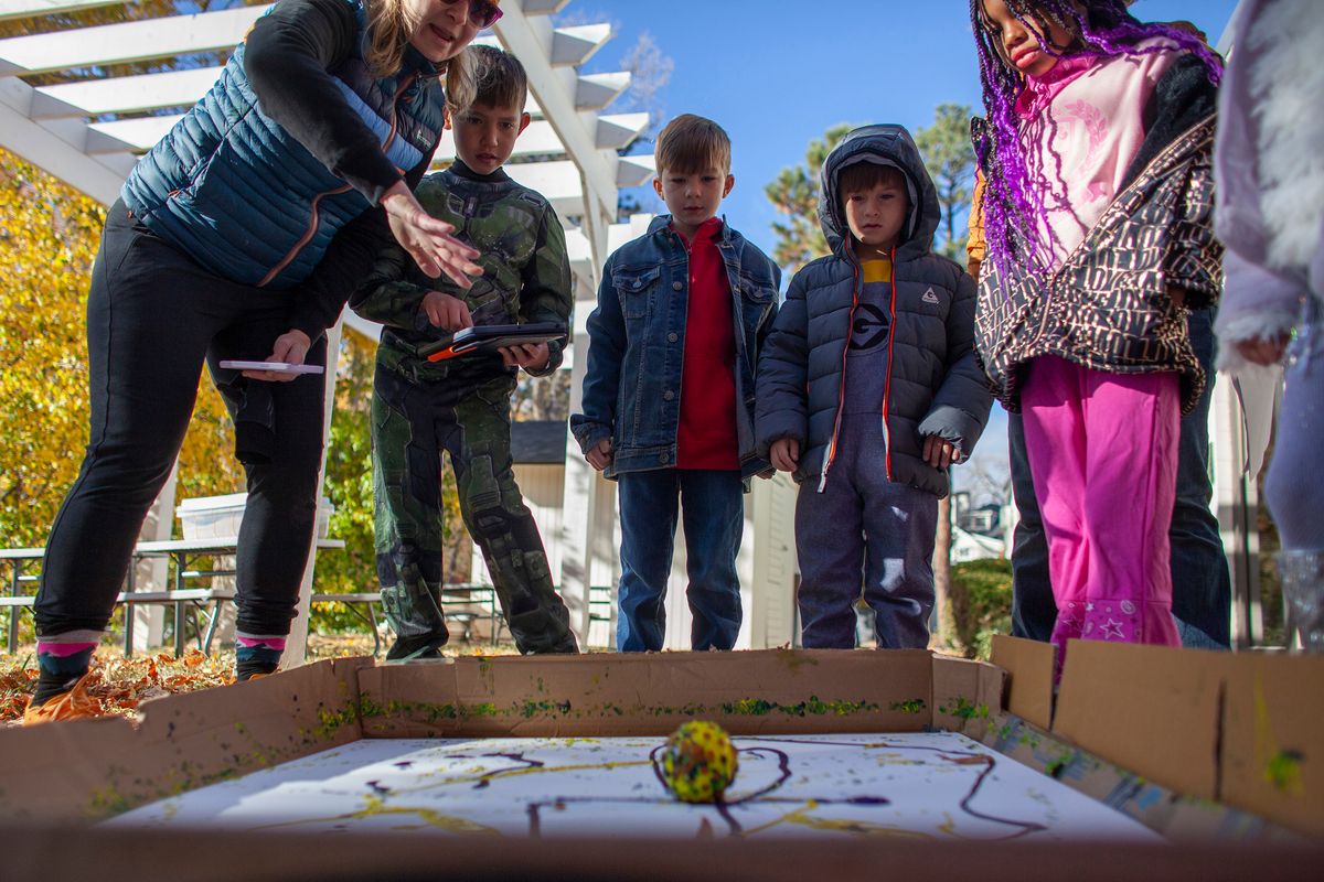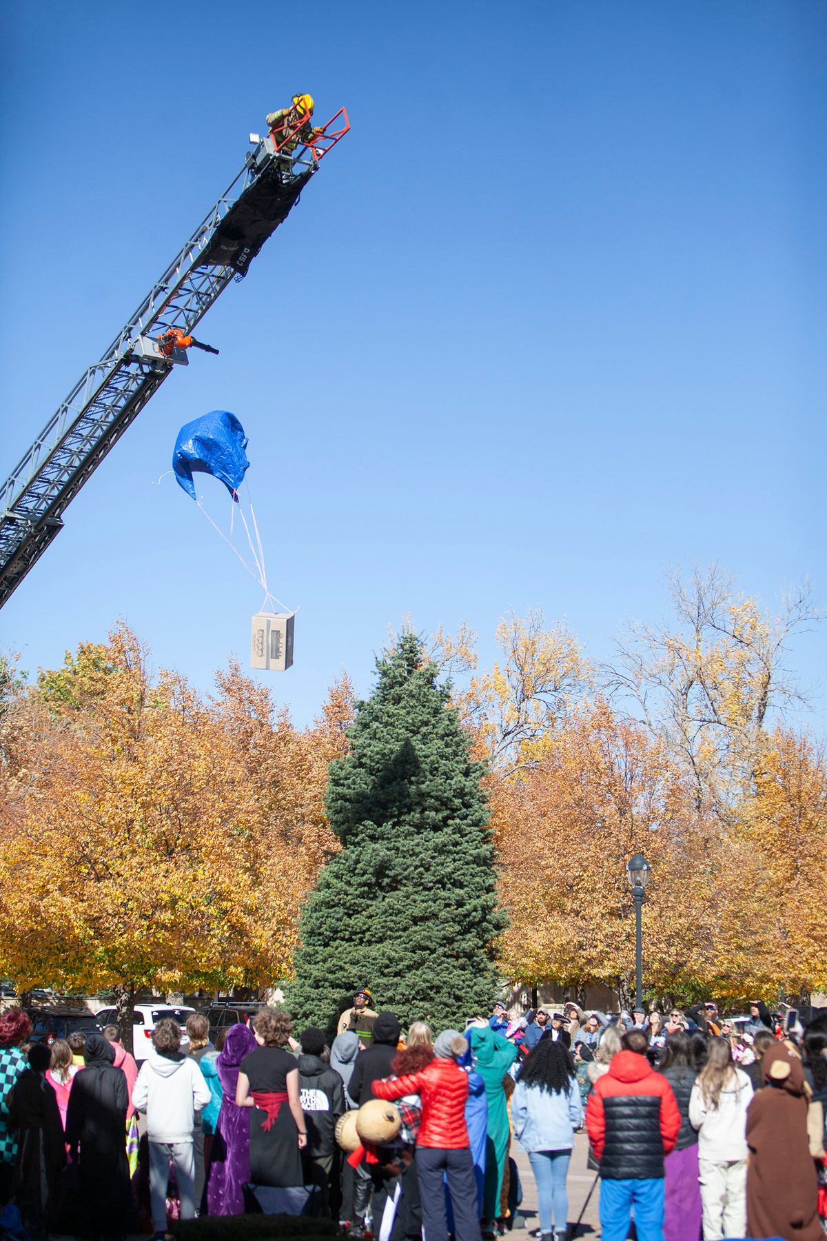 The day also included The Great Pumpkin Drop in which students learned what it takes to engineer a system to keep a pumpkin intact despite sustaining a 75-foot free fall. The Colorado Springs Fire Department partnered with CSS to help students through this hands-on engineering project. Students learned and put into practice the Engineering Design Process – ask, imagine, plan, create, improve. Each class team designed a pod prototype to protect the pumpkin that will be hoisted up a fire truck ladder to 75 feet in the air and then dropped to the ground.