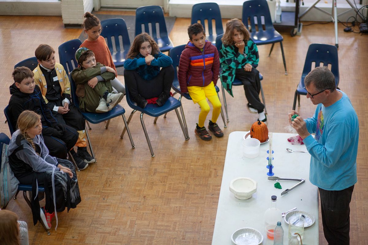 Lower and Middle school students immersed in X-STREAM Day, a program to bring hands-on STEAM-themed events (Science, Technology, Engineering, Art, Math), on Friday, October 27, 2023. Teachers and students rotated through seasonal and Halloween-themed stations throughout the day including Creepy Cool Science, Cave Crawling by Cave Dave, and Haunted Carriage House Art to name a few.